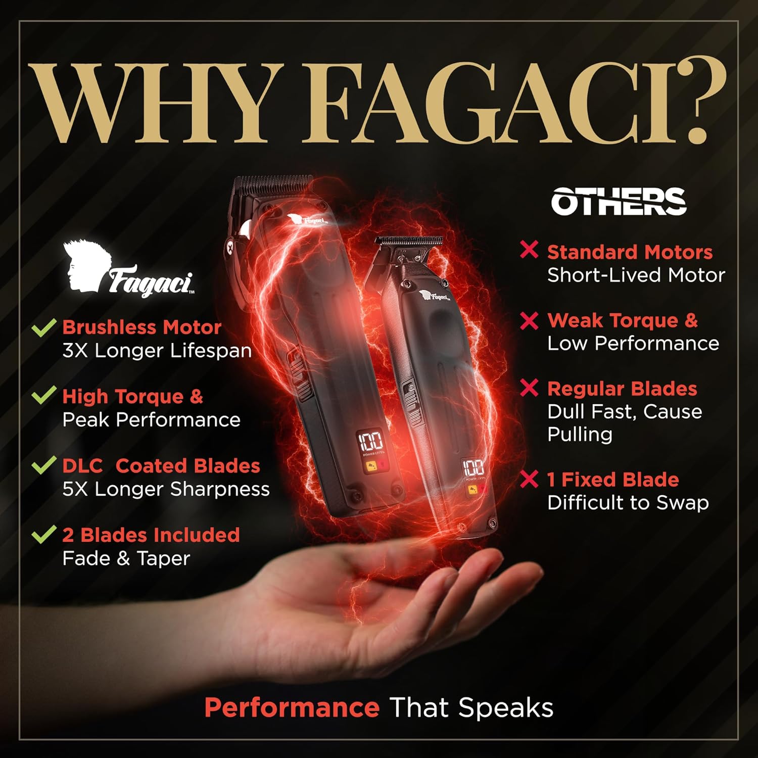 Fagaci Professional Hair Clippers for Men with Superior Precision, Brushless Motor Barber Clippers and Trimmers Set, 5X Longer Sharpness Hair Cutting Kit, Mens Haircut Cordless Clipper for Barber