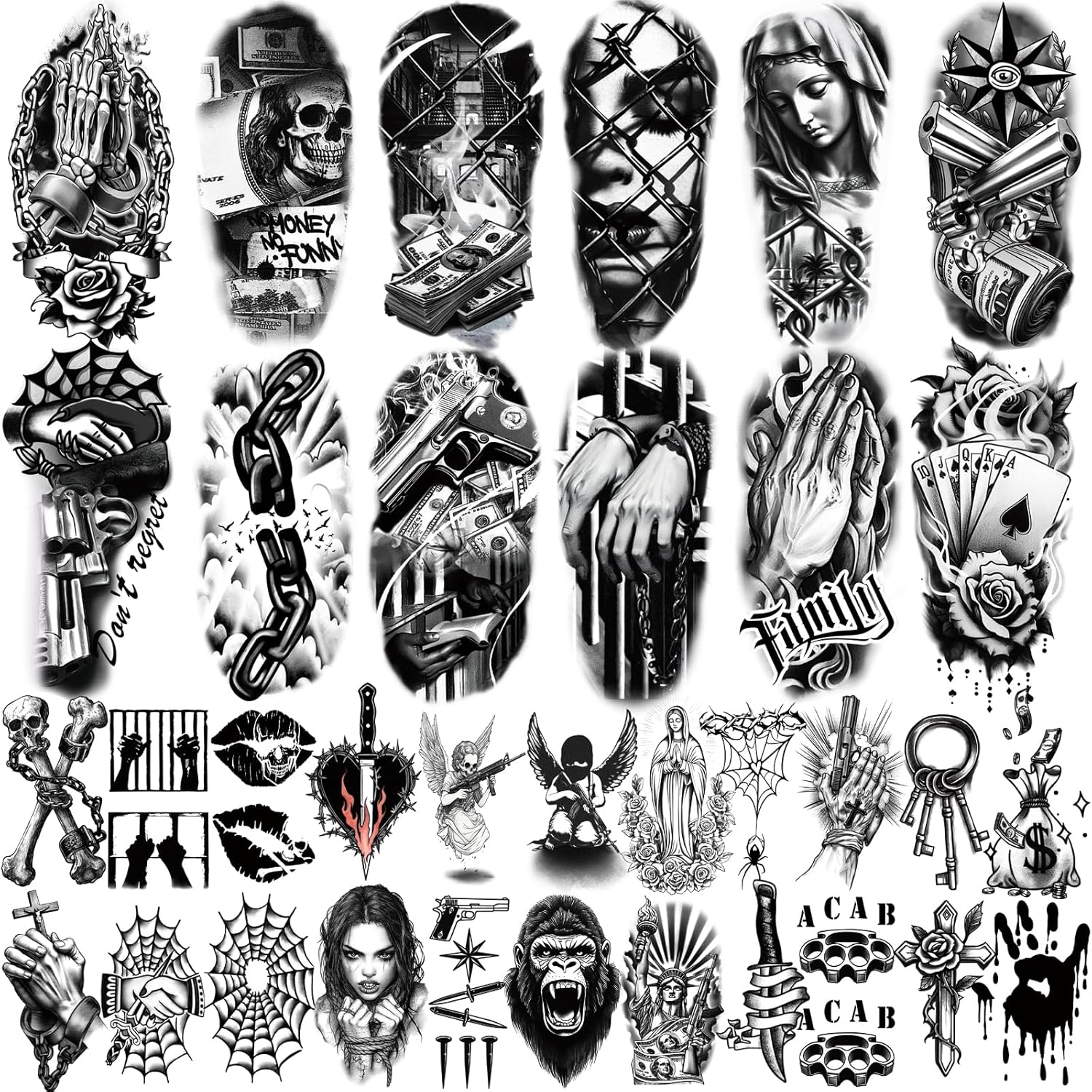 - UNIQUE DESIGN -- Including scary skull skeleton knife rose mermaid angle clown and more. Can be attached to various parts of the body, such as arms, hands, shoulders, thighs, waist, back, etc