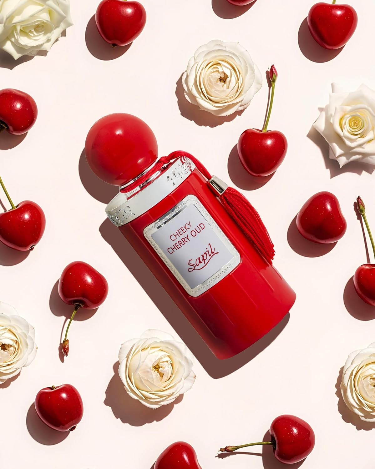 Sapil Cheeky Cheery Oud Unisex Eau De Parfum - Spicy Cherry & Rose Blend with Oud Twist - Long Lasting Niche Perfume for Men & Women - 3.38 oz