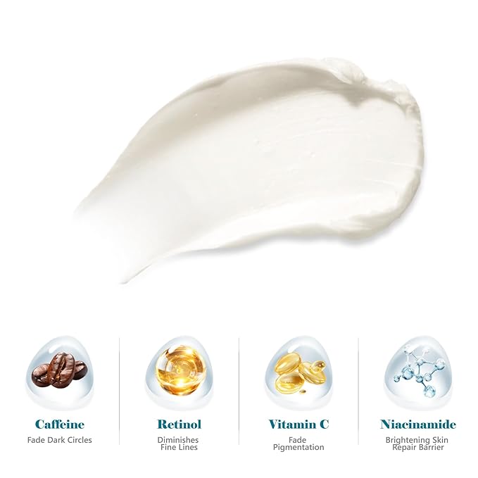 - Anti-Aging & Firming: Retinol in the retinol eye balm invigorates collagen synthesis while vitamin C bestows potent antioxidant protection, facilitates the repair of the skin barrier, and aids in postponing visible signs of aging.