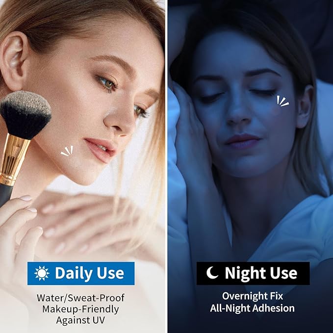 - All-Night Adhesion: No matter how much you change positions while you sleep, the adhesive properties of this product ensure that it stays firmly attached all night long without loosening or falling off, so you can enjoy the treatment at night and remove it in the morning without causing redness or any irritation to your skin, so you can greet each day with a refreshed look