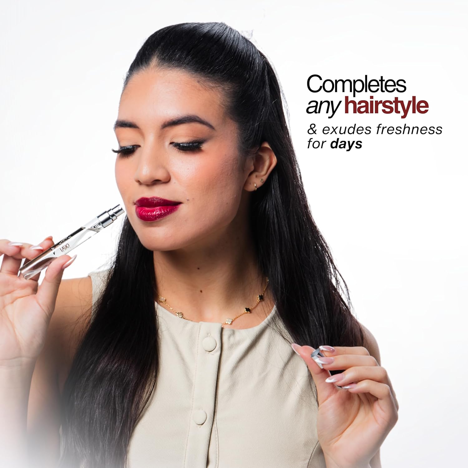 - TAMES FLYAWAYS & STATIC: This L’Luxe Hair Perfume controls static and smooths flyaways, ensuring your hair remains sleek, neat, and stylish throughout the day. It delivers a polished finish that lasts, giving you the confidence of a smooth, frizz-free hairstyle all day long.