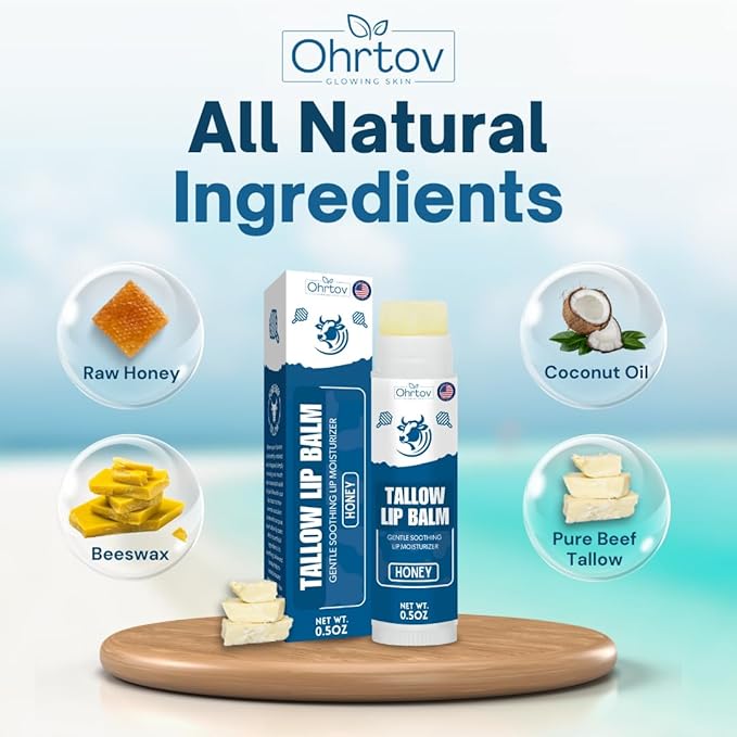 - INTENSELY HYDRATING FORMULA: Immerse your lips in moisture with our grass-fed organic beef tallow lip balm. Crafted with natural fats, akin to those in human skin, it maintains your lips' moisture barrier for enduring hydration and velvety softness.