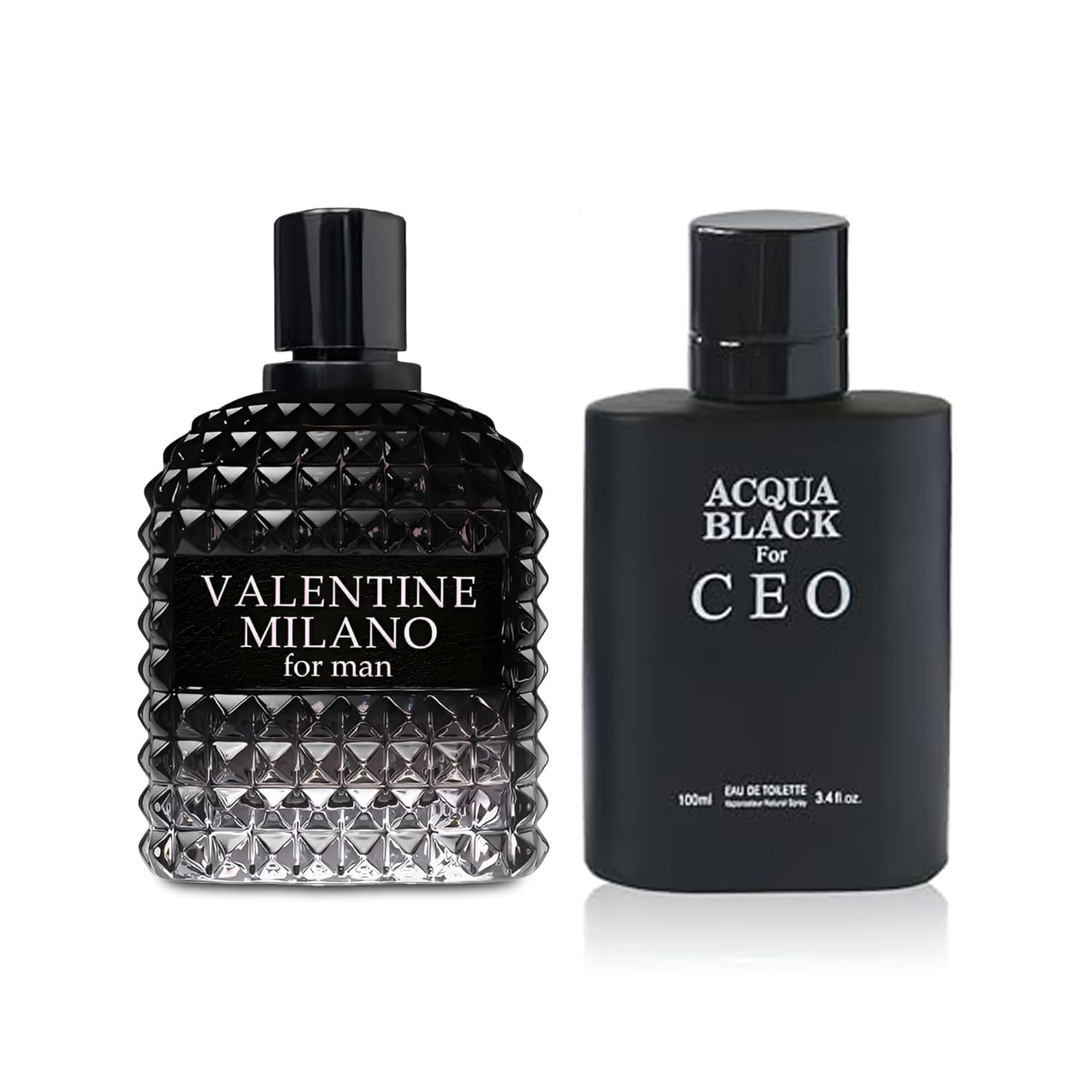 2PCS Valentine Milano/Acqua Black CEO Eau De Toilette for Men-Fresh,Romantic Scent Perfume for Men 3.4 Fl Oz Each Mens Cologne For All Skin Daily Used