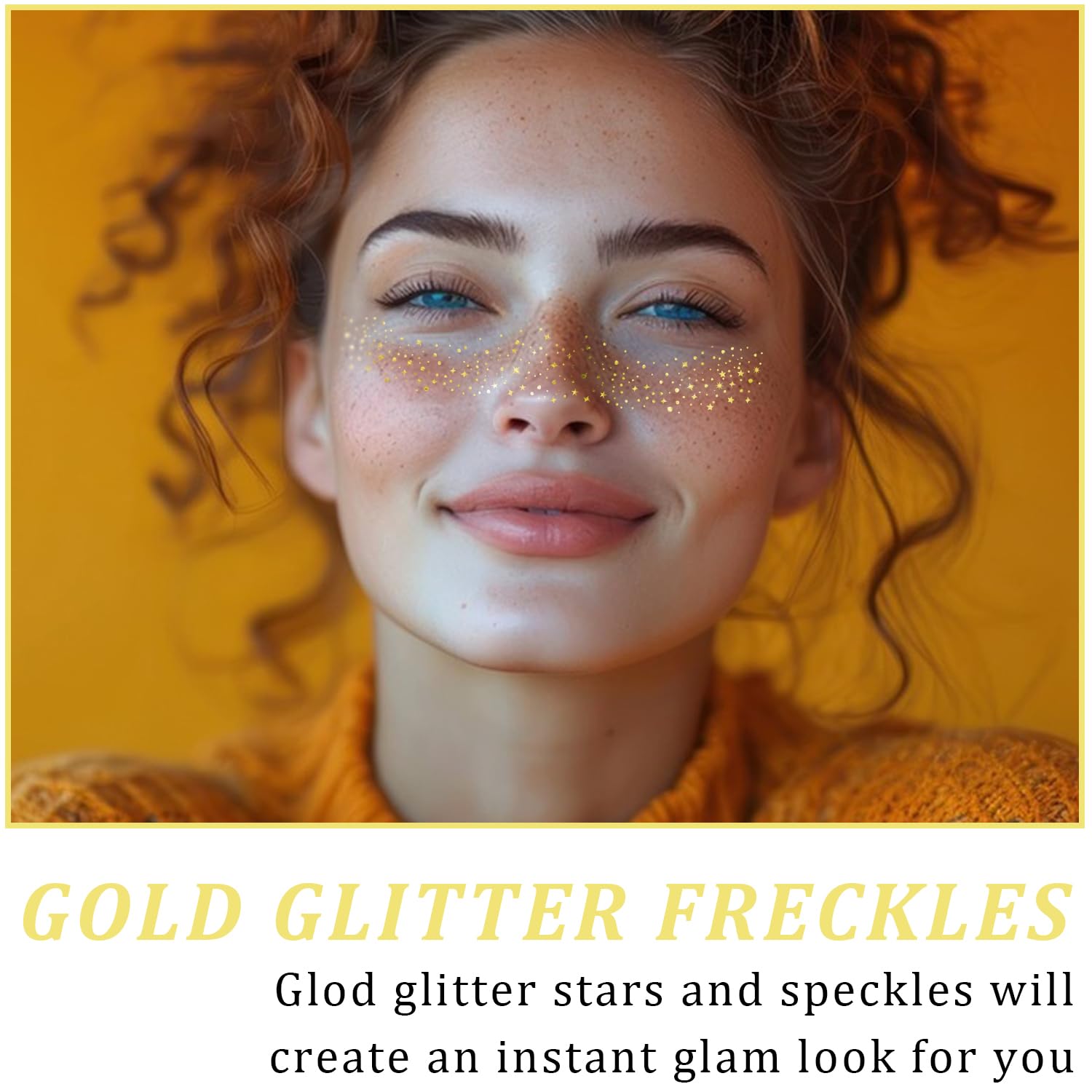 - Gold Glitter Freckles: Our glitter freckles face tattoo set contains 15 pieces gold glitter freckle patches, allow you to create a stunning, glittery look on your face for special occasions or festivals. Perfect for wearing in Halloween, Christmas, birthday parties, concerts, dances and shows!