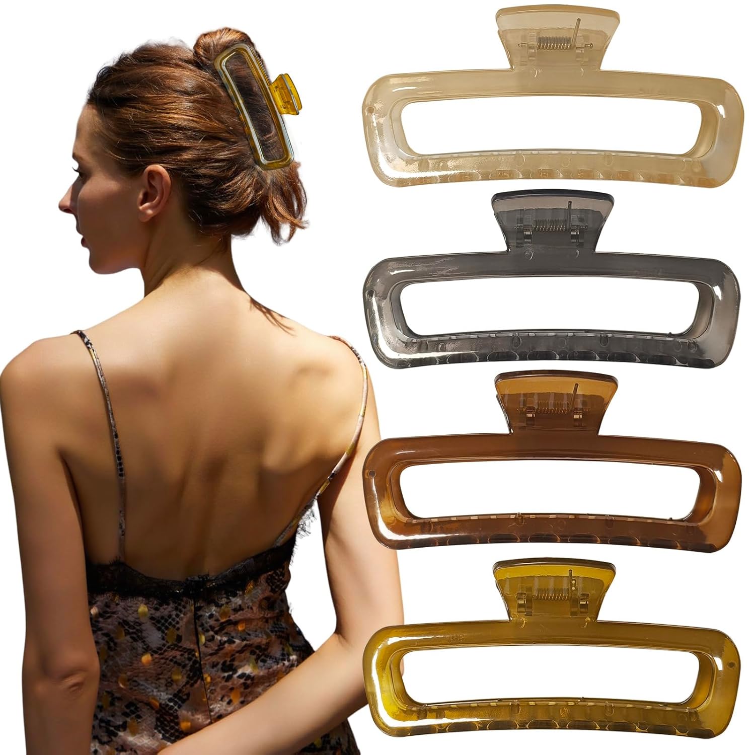 5 Inch Large Hair Claw Clips, No Slip Glossy Jelly Square XL Clips for Thick Long Curly Hair, Women's Big Rectangle Strong Clips, 4 Pack