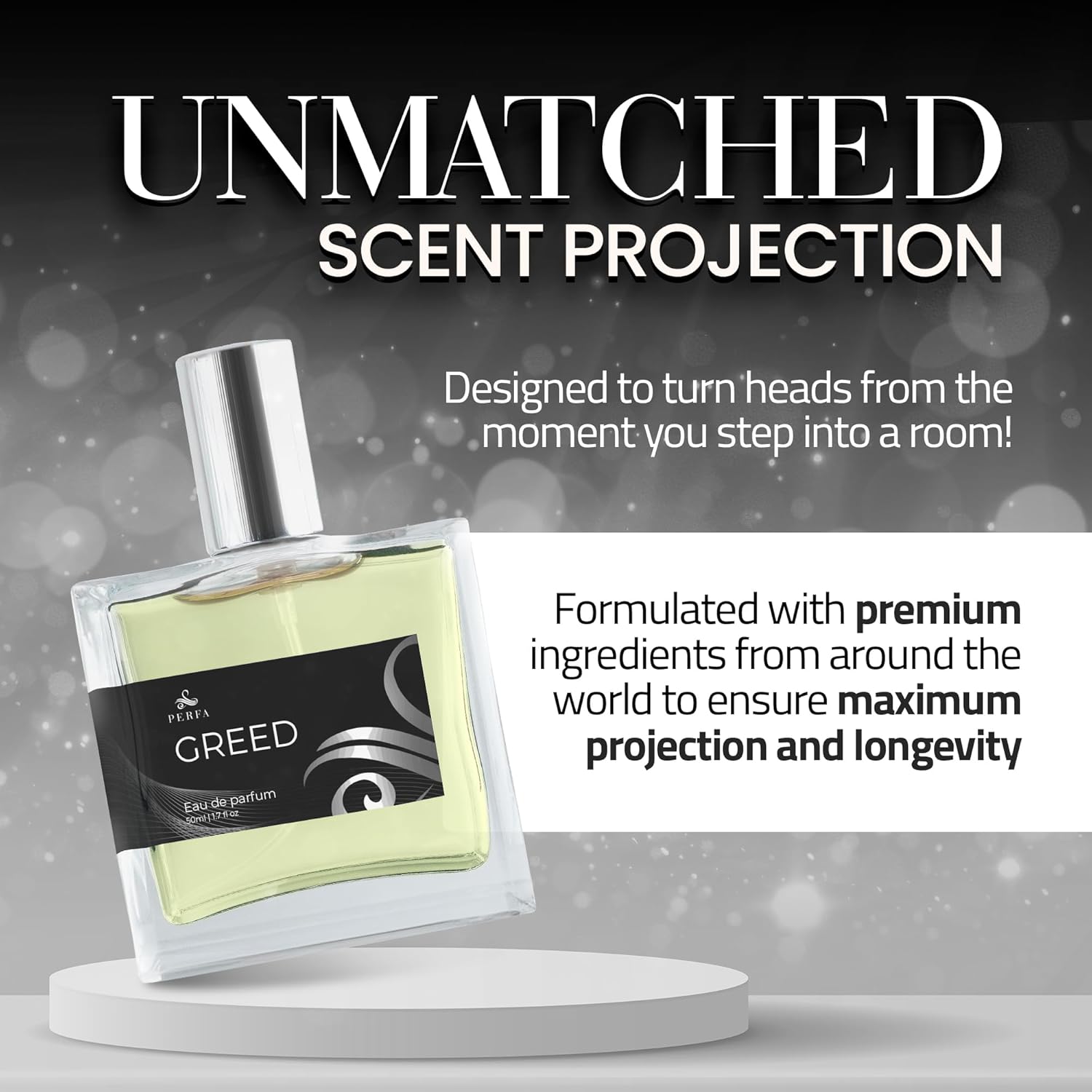 Perfa Greed Cologne for Men | Affordable Men's Perfume | 12 Hour Lasting Luxury Perfumes for Men | Gift-Ready Men's Cologne | Original Fragrances