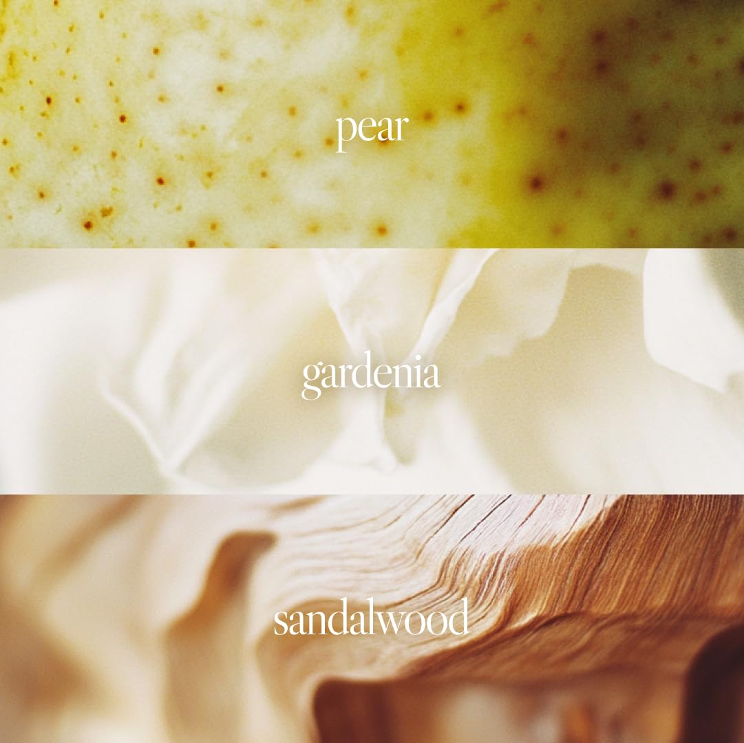- Scent : Cashmeran, Gardenia, Pear, Sandalwood, Turkish Rose