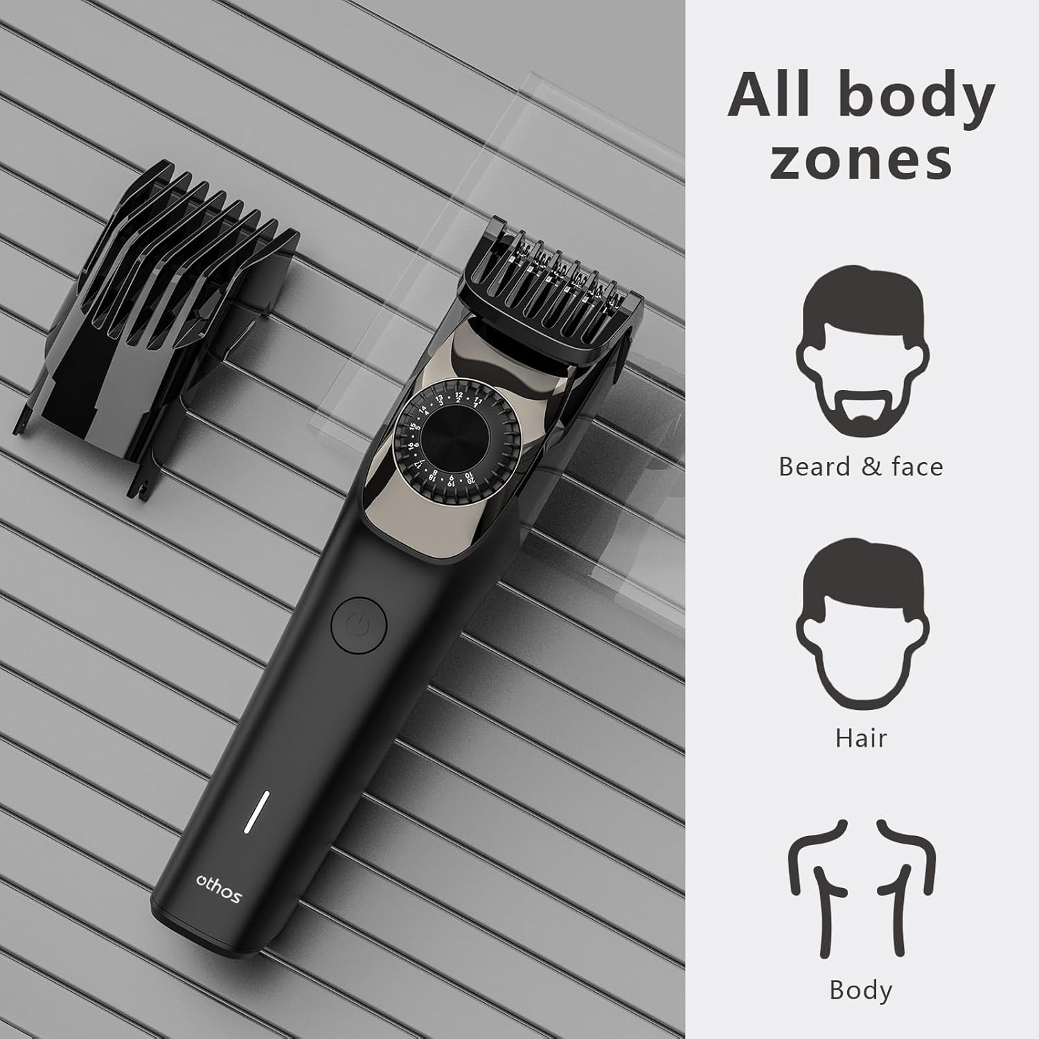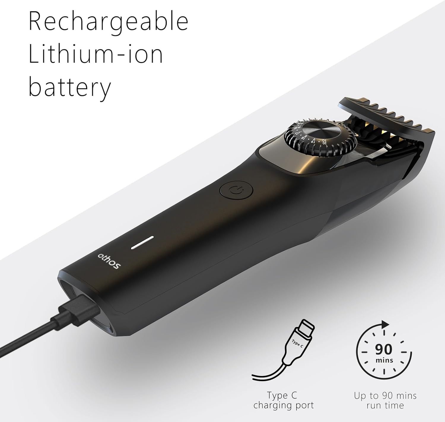 othos Hair Beard Trimmer,Cordless with Adjusting Wheel, USB Type C Rechargeable, 2 Guide Combs,Cleaning Brush