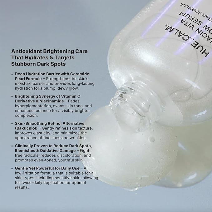- ๐ง Hydration-First Brightening โ No More Dryness or Peeling โ Many brightening serums leave your skin flaky and irritated. Hue Calm's advanced hydration technology ensures that your skin stays plump and dewy, thanks to Hyaluronic Acid serum, Squalane moisturizer, and Centella Asiatica extract. The deep-penetrating formula strengthens your moisture barrier, leaving you with a healthy glow and long-lasting hydration.