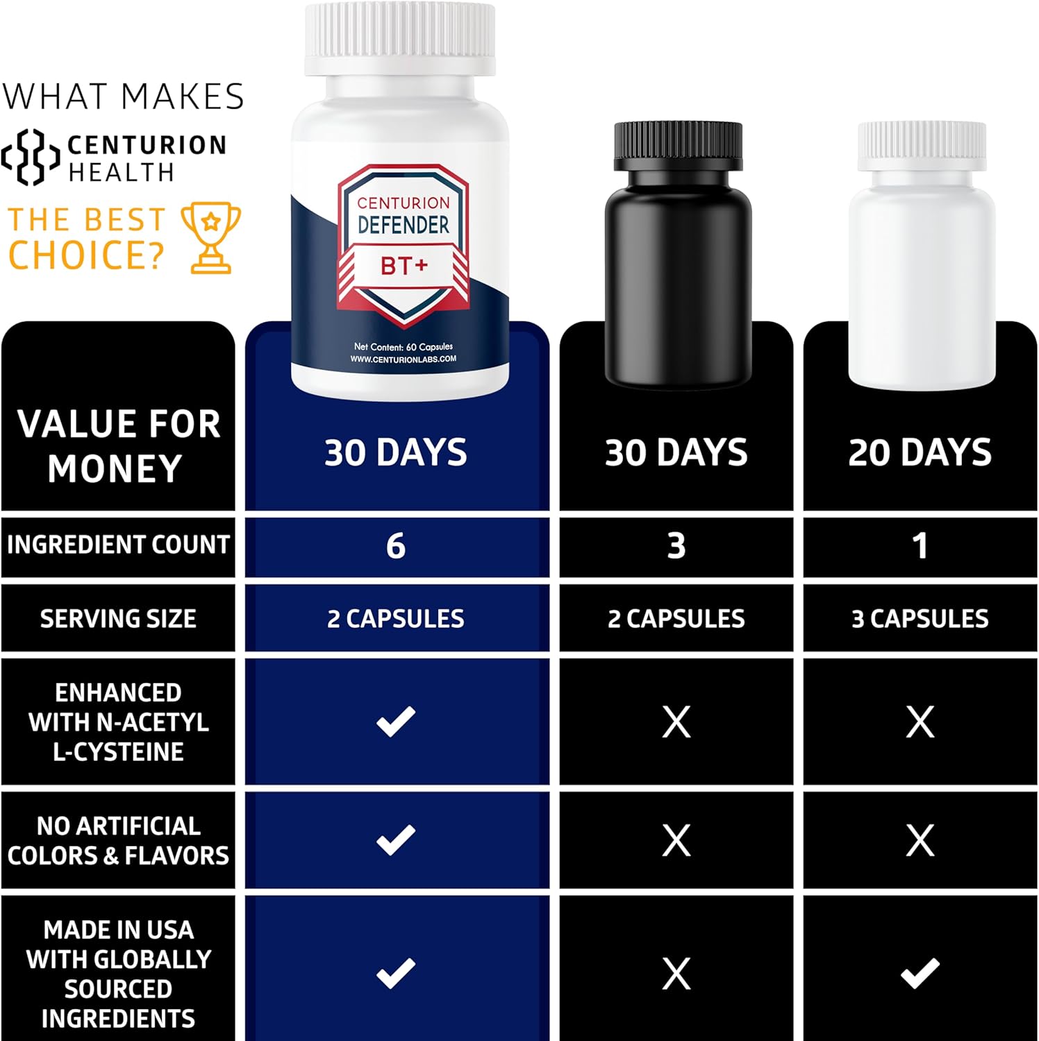 Centurion Defender BT+, Natural Circulation Supplement with Black Cumin Seed, Bromeliad, Luteolin, NAC, Serrapeptase and Lumbrokinase to Support Optimal Blood Flow, 60 Caps