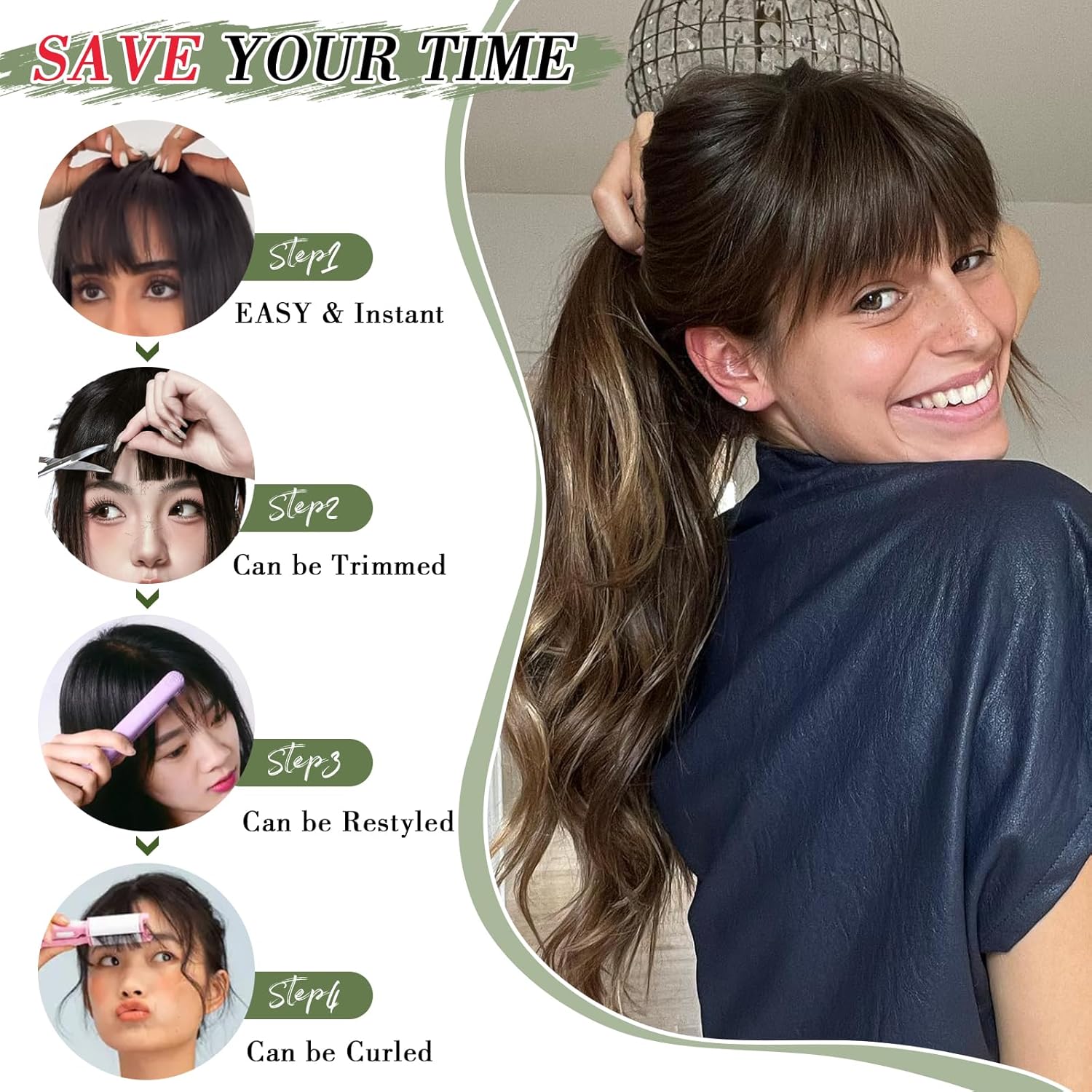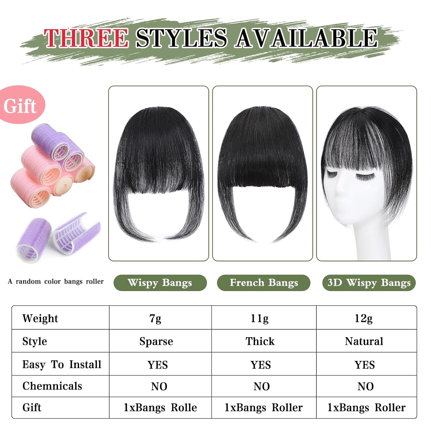 - Style : clip in bangs