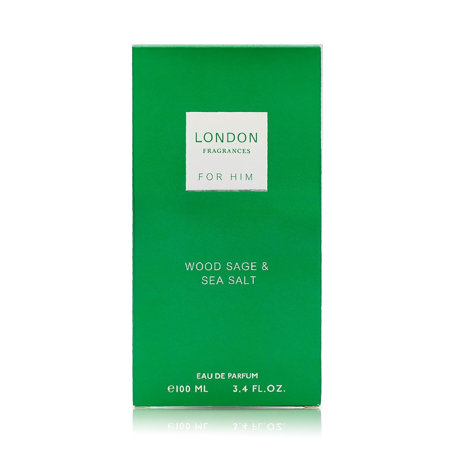 London Fragrances - Wood Sage and Sea Salt - Bergamot, Musk, Sandalwood Cologne for Men - Long Lasting Perfume for Men - 3.4 oz
