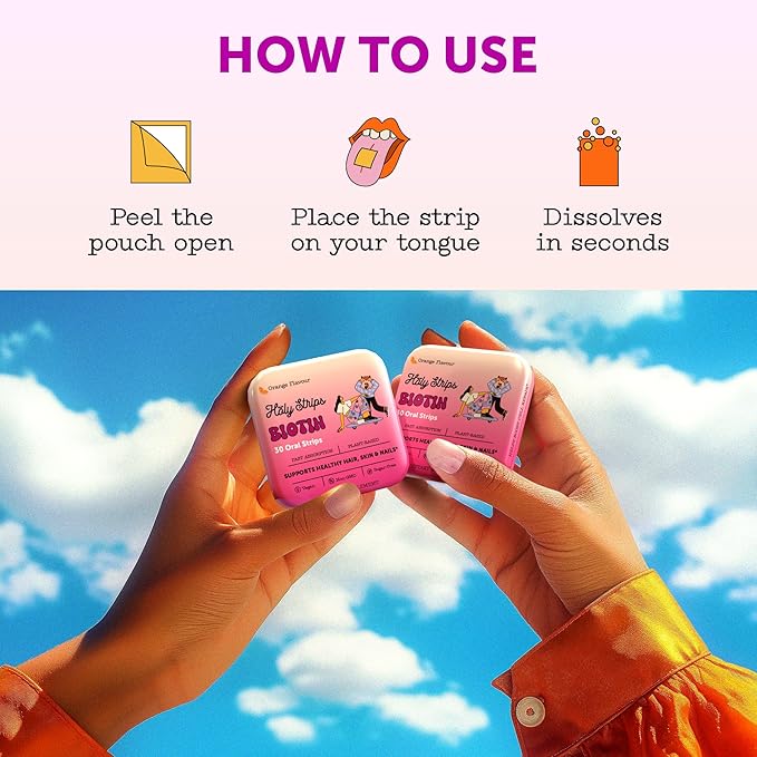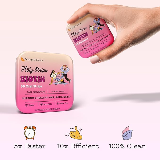 Biotin Oral Strips - Fast-Absorbing, Vegan, Non-GMO, Sugar-Free - Supports Healthy Hair, Skin, and Nails - Delicious Orange Flavor - 30 Count