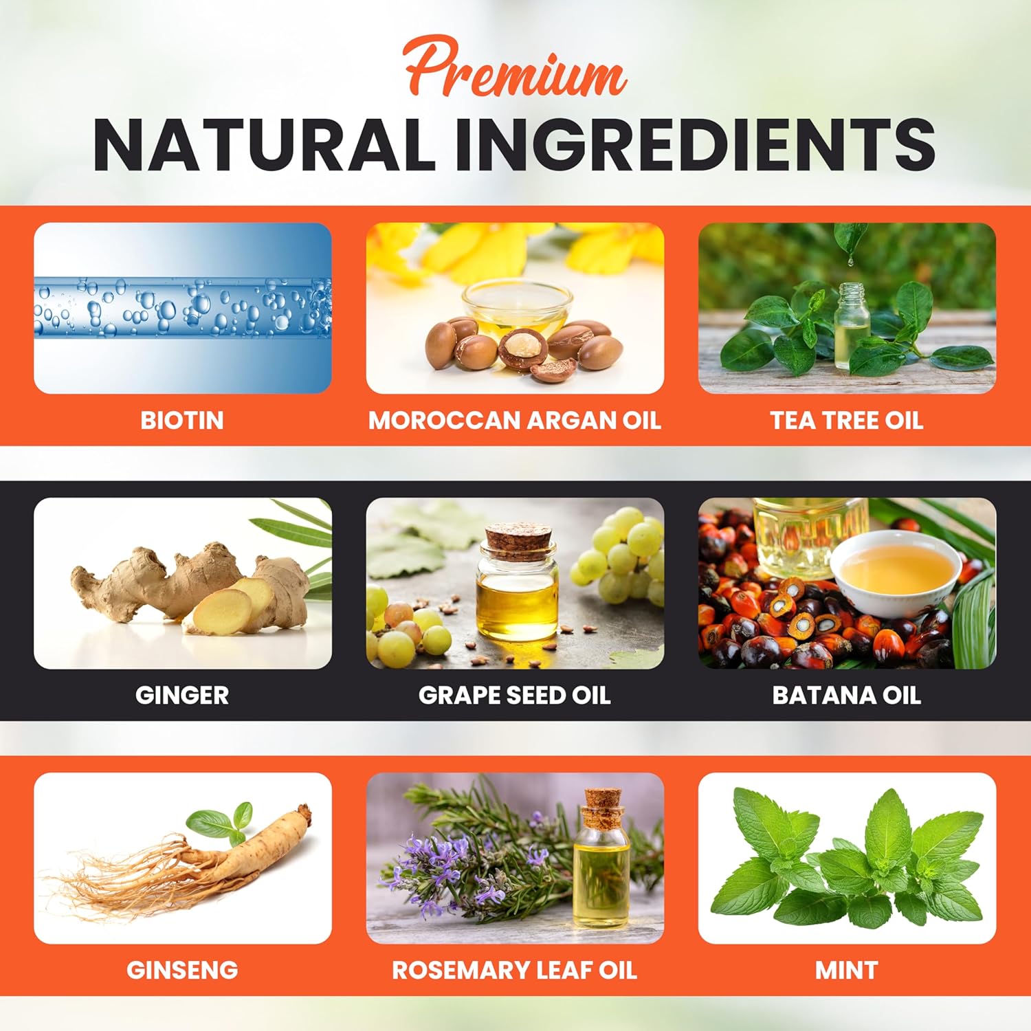 - Advanced Hair Growth Formula - This biotin-infused shampoo harnesses the power of natural botanicals to revitalize your hair from root to tip. The specialized blend stimulates follicles and creates the optimal environment for healthy hair growth.