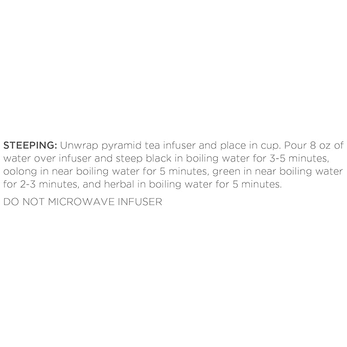 - HOW TO STEEP - Unwrap the Pyramid Infuser, steep in hot water, and reveal the exquisite nature of the whole leaf teas. Allows the tea leaves to fully unfurl in the water, resulting in a most flavorful cup of tea. Do not microwave pyramid infuser.