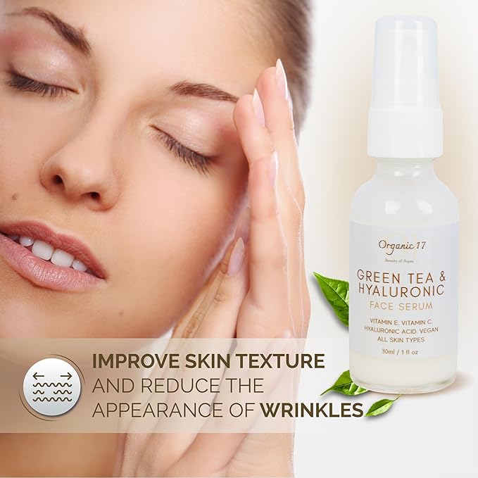 - Powerful Antioxidant Protection from Green Tea Formulated with green tea extract and organic aloe vera juice, this serum calms irritation, soothes redness, and defends against environmental stressors. Ideal for sensitive or acne-prone skin in need of gentle care.