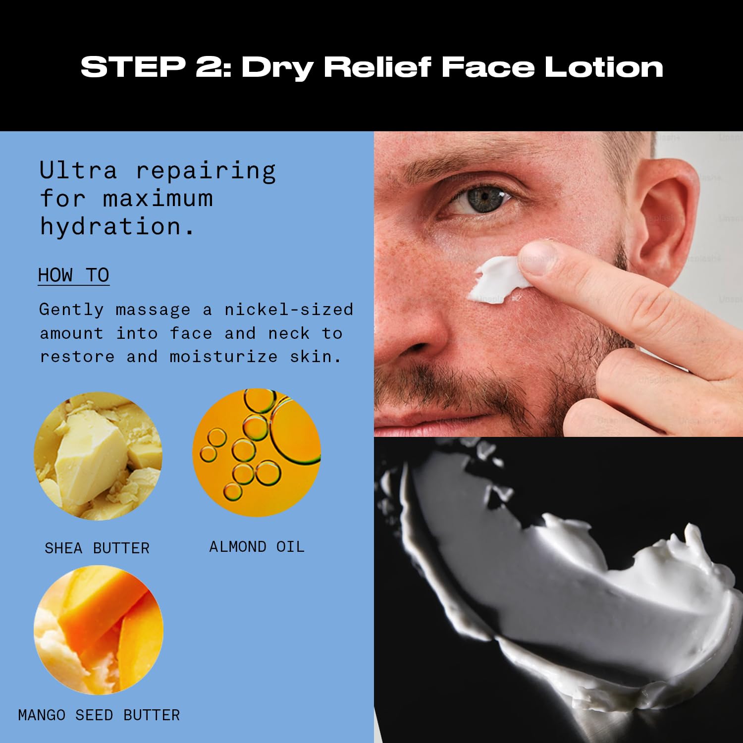 - NATURALLY SCENTED - The Dry Relief Face Wash is fragrance-free without a scent. The Dry Relief Face Lotion has a soothing and naturally-derived geranium leaf scent.