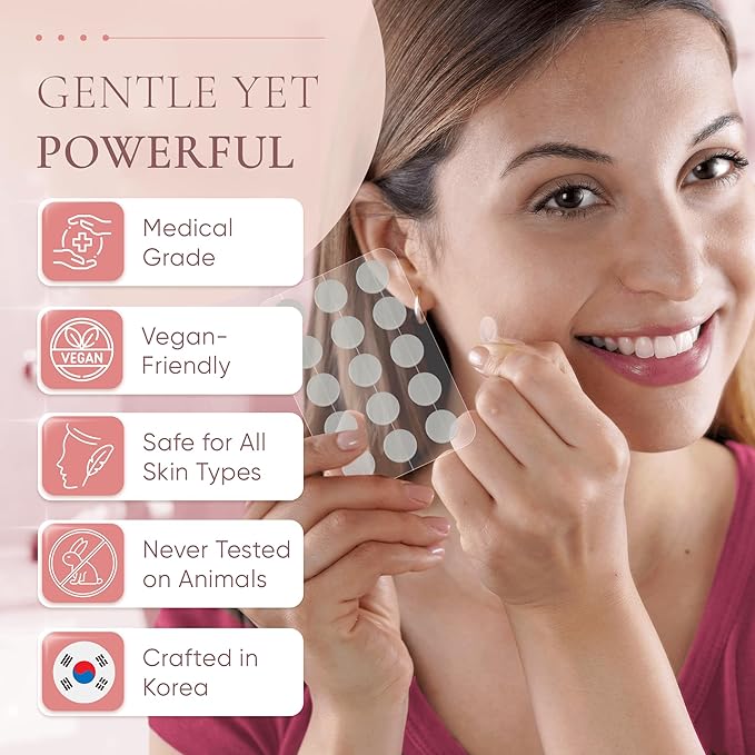 - Gentle Yet Powerful: Vegan, Hypoallergenic, and Suitable for All Skin Types: - Made with skin-friendly, gentle materials, our patches are vegan, hypoallergenic, making them suitable for all skin types. Crafted in Korea, the skincare experts, for effective results.