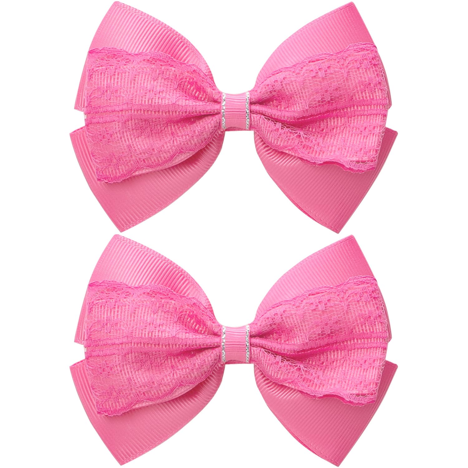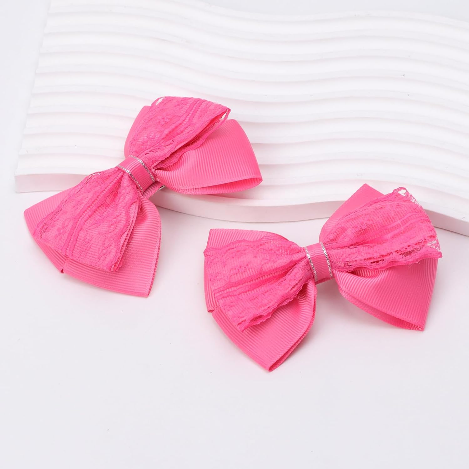 4-Inch Hair Bows Alligator Clips Delicate Lace Hair Accessories for Girls, Toddler, Kids and Women Daily Dress Up Birthday Wedding Christmas Occasions- Set of 2 (Hot Pink)