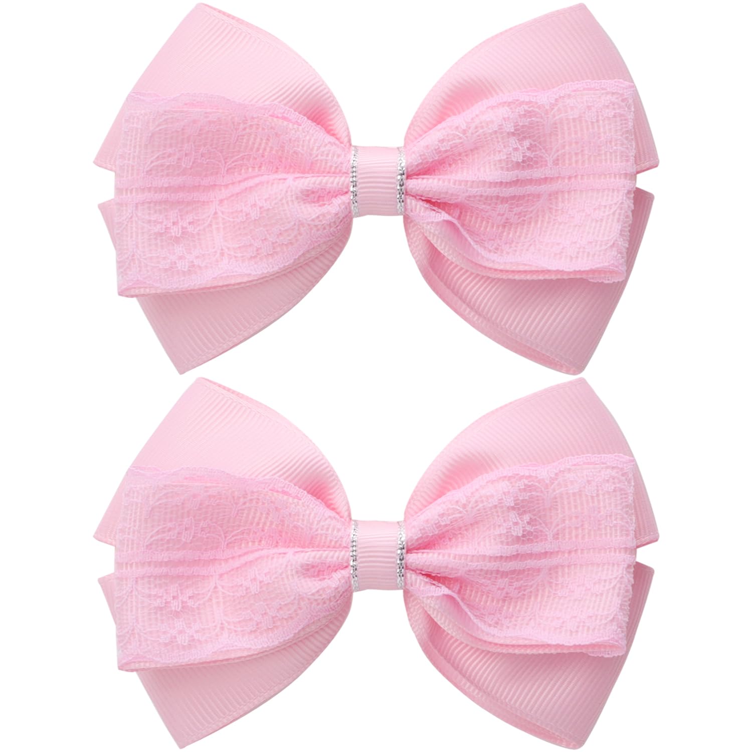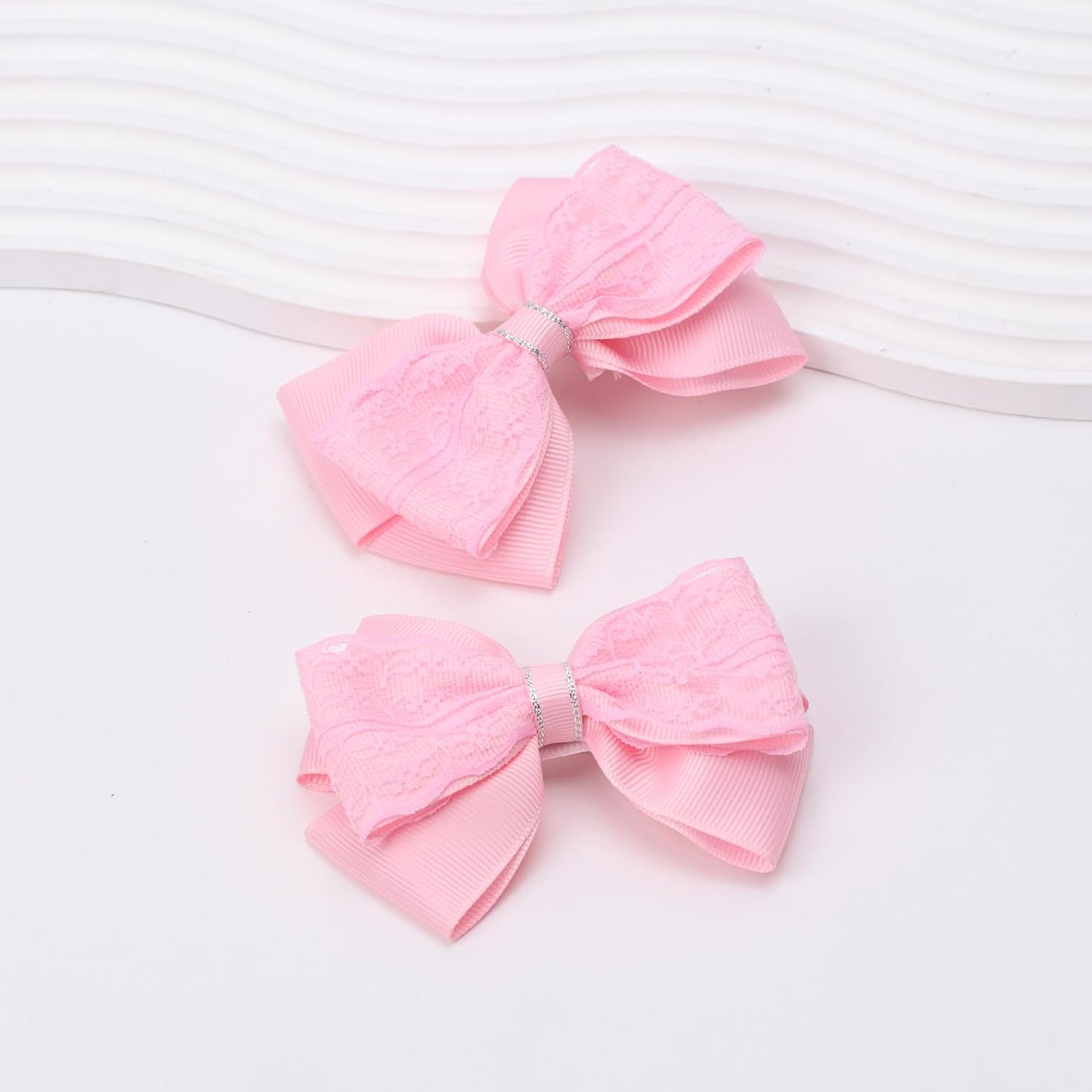 4-Inch Hair Bows Alligator Clips Delicate Lace Hair Accessories for Girls, Toddler, Kids and Women Daily Dress Up Birthday Wedding Christmas Occasions- Set of 2 (Pink)