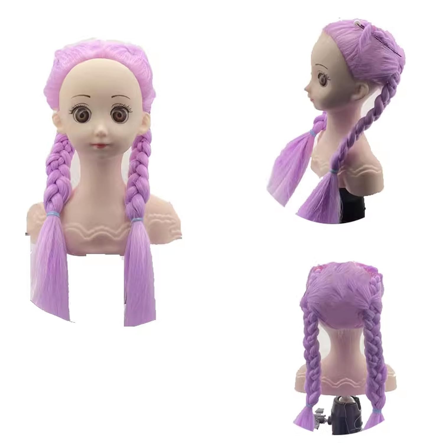 Small Doll Head For Hair Styling,Mini Synthetic Mannequin Head,Doll Head With Clamp Holder & Tools, Practice Doll Head For Hair Braiding,Styling and Cutting with Two Bows (Light purple)