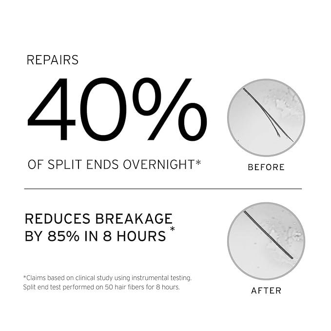 - KEY BENEFITS - It’s designed to repair and strengthen breakage-prone hair & reduce the look of split ends. As an overnight treatment, it’s ideal for all hair types experiencing severe damage, broken keratin bonds, physical breakage & split ends.
