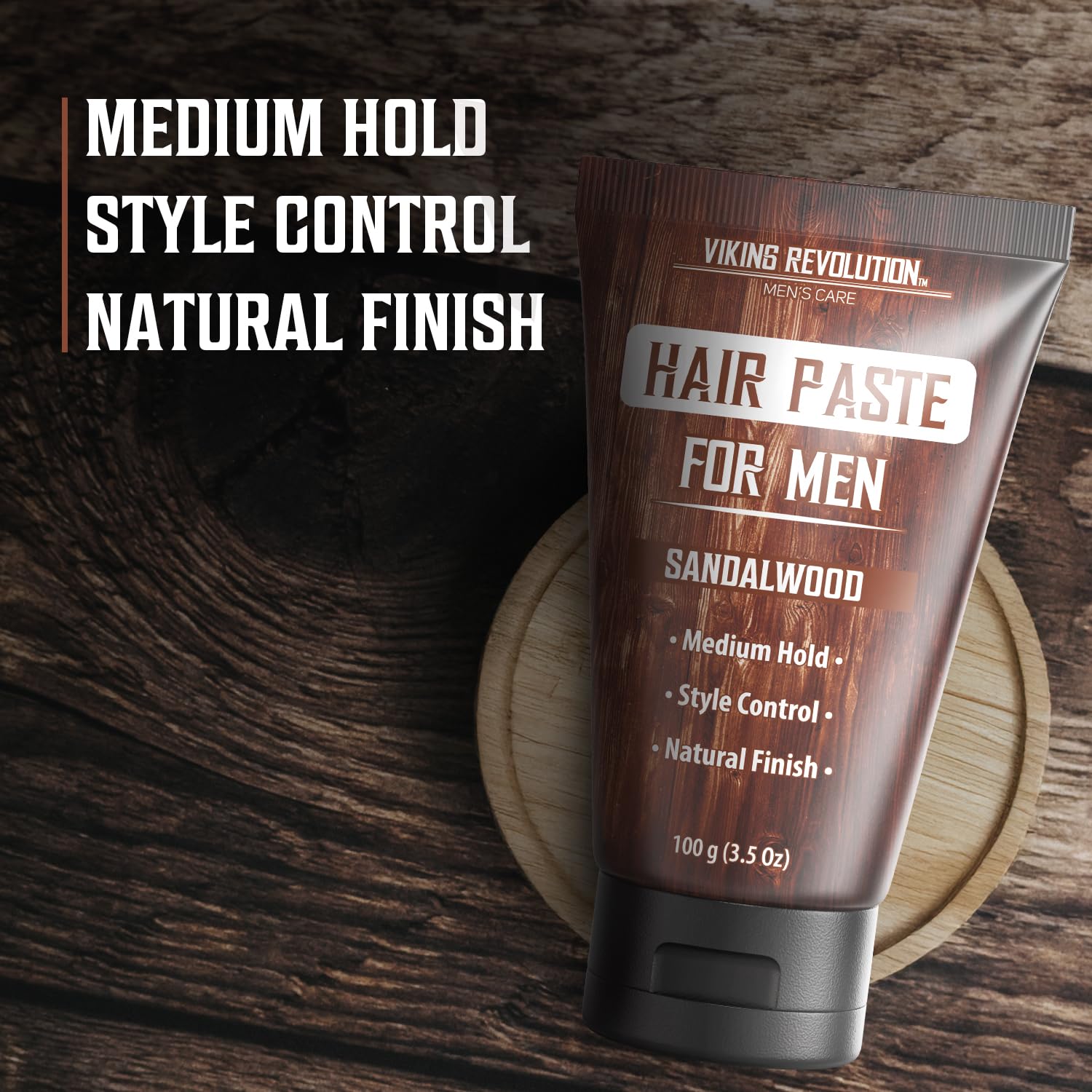 Viking Revolution Hair Paste for Men - Sandalwood Scented Texture Paste - Medium Hold, Natural Finish - Matte Look, Easy Wash Out, Non-Greasy Styling Cream for All Day Control (3.5oz)