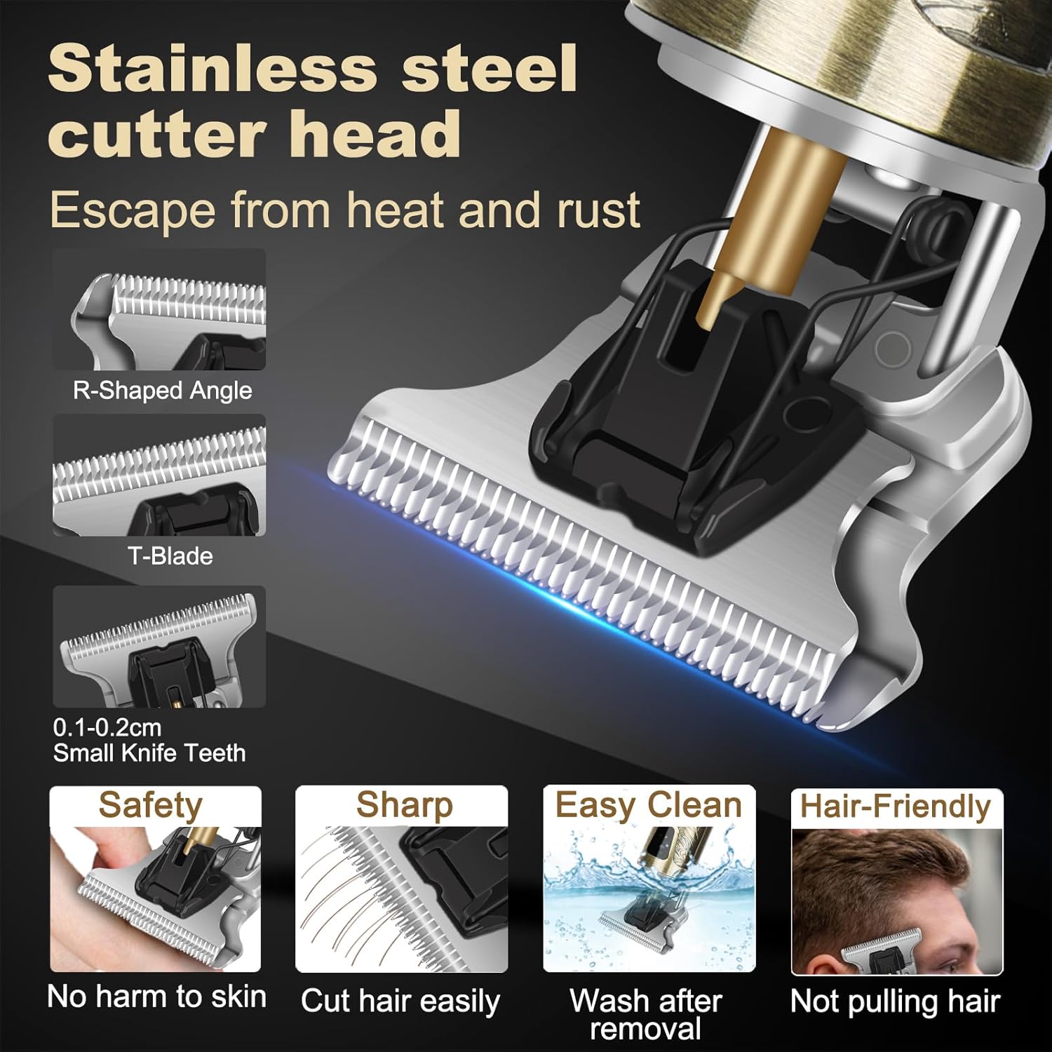 - T-Style Zero-Gap Cutter Head:Engineered with a sleek T-shaped stainless steel blade crafted for flawless precision, this clipper merges aesthetic elegance with uncompromising functionality. The ultra-sharp edges effortlessly navigate through hair, delivering a clean cut without tugging or discomfort. A built-in protective cover guards the blade against daily wear, enabling quick rinses under water for easy maintenance—no complicated cleanup required.
