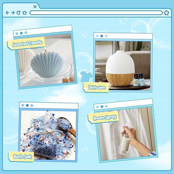 - Experience the delightful aroma of SALUBRITO laundry essential oil set, featuring 6 captivating scents: fresh linen, fresh cotton, lavender field, citrus boost, ocean mist, and clean laundry scented oil. Transform your laundry routine with a variety of clean fragrance oils that invigorate your senses and keep your fabrics fresh.