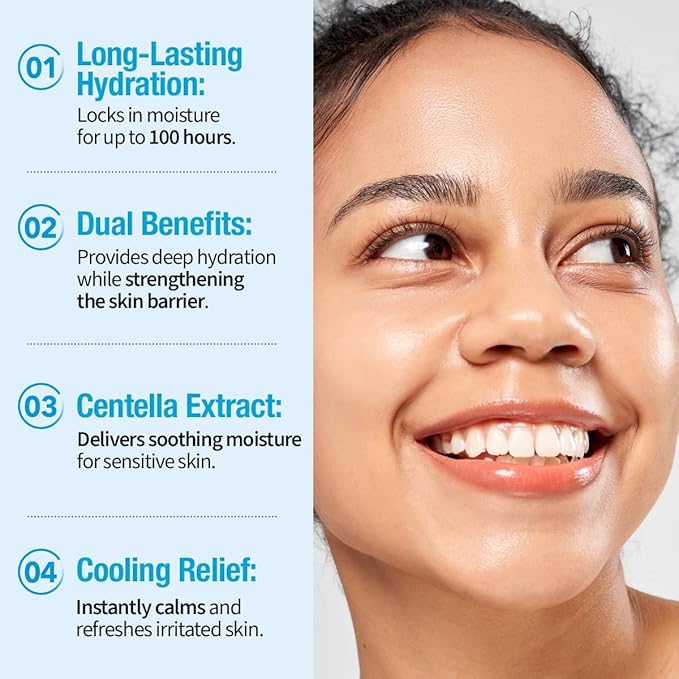- Deep Hydration & Soothing Care – Infused with Ice Houttuynia Cordata Extract, this moisturizer provides intense hydration while calming sensitive skin. Hyaluronic Acid replenishes moisture deep within the skin barrier, leaving your complexion soft and refresh.
