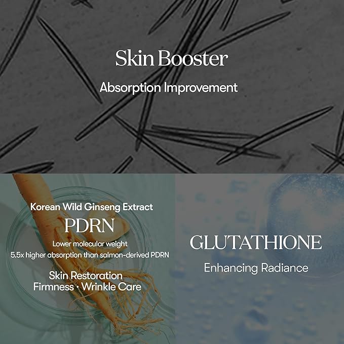 - [Vegan PDRN] Our PDRN essence is uniquely sourced from Korean ginseng, providing a distinctive ingredient choice, rather than the commonly used fish derivatives.