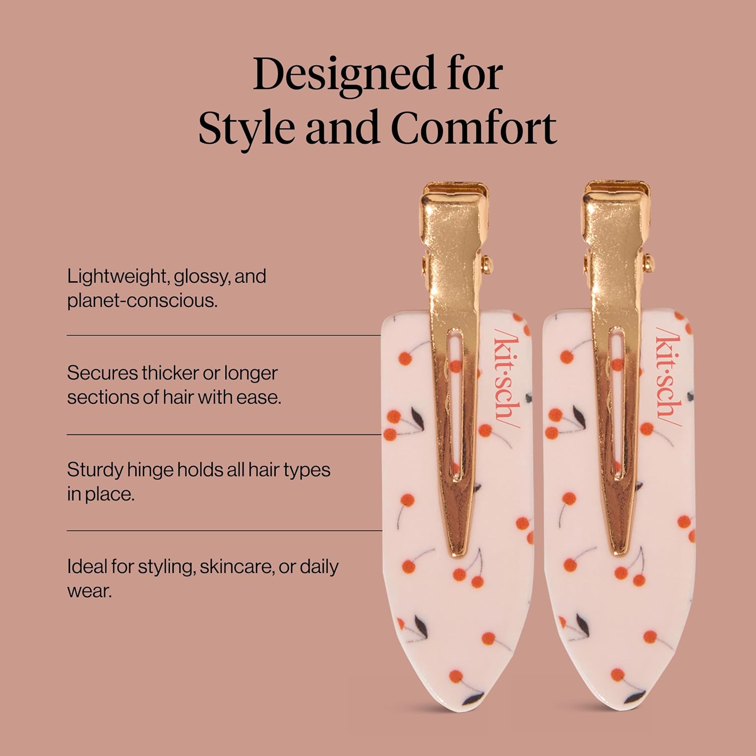 Kitsch Creaseless Hair Clips for Women - No Crease, No Bend Hair Clips for Styling, Bangs, Makeup Application, Face Wash - Recycled Acrylic - Cherry Print | Ideal Gifts for Women, 4pcs