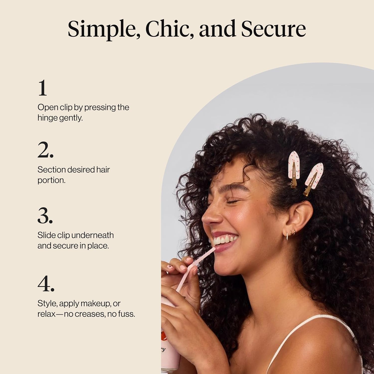 - HIGH-QUALITY CREASELESS HAIR CLIPS: Made with recycled materials and professional-strength hair clips for styling, these creaseless hair clips provide a long-lasting, secure hold without leaving bends or dents in your hair.