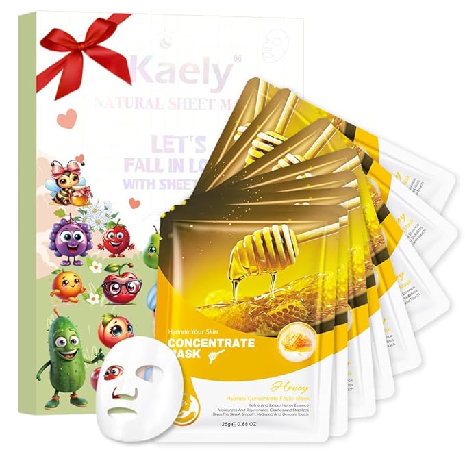 8 Pack Honey Face Sheet Mask Skincare,Hydrating Face Mask For Sensitive Skin,Moisturize,Soothing,Nourish for All Skin Types,Natural Spa Party Facial Mask Skincare Set for Women Men Girls
