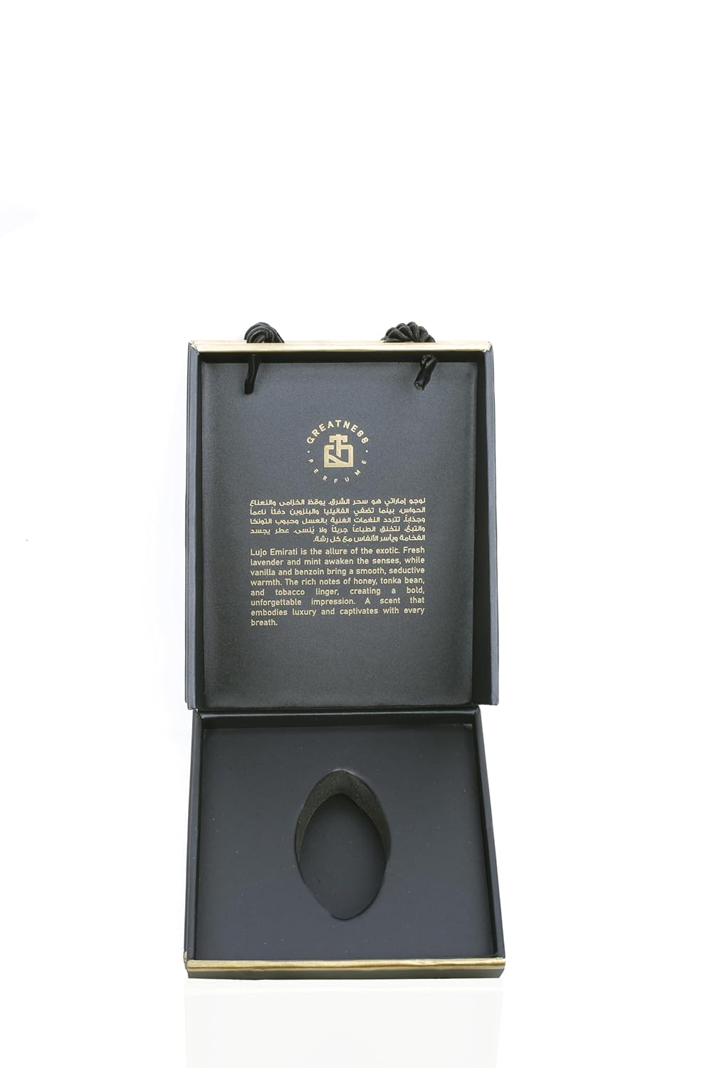 Greatness Lujo Emirati Eau de Parfum - Unisex Perfume for Men and Women - Long Lasting Luxury Fragrance with Fresh Lavender, Mint, Smooth Vanilla, Benzoin, and Deep Notes of Honey - 100 ml