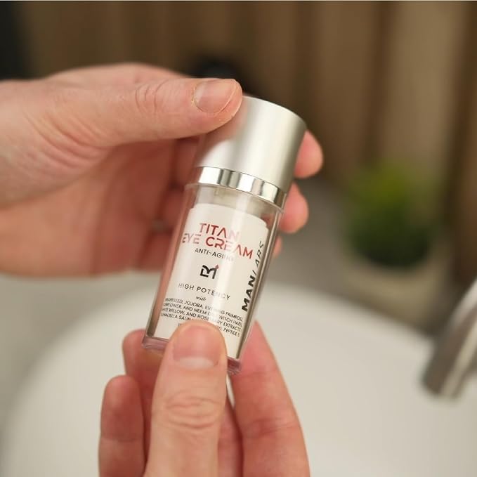 Titan Mens Eye Cream Anti Aging Bags & Dark Circle - Eye Bags Treatment for Men, High Potency Wrinkle Cream for Men, Herbal Extracts, Peptides for All Skin Types - Unscented, 0.5 Fl Oz