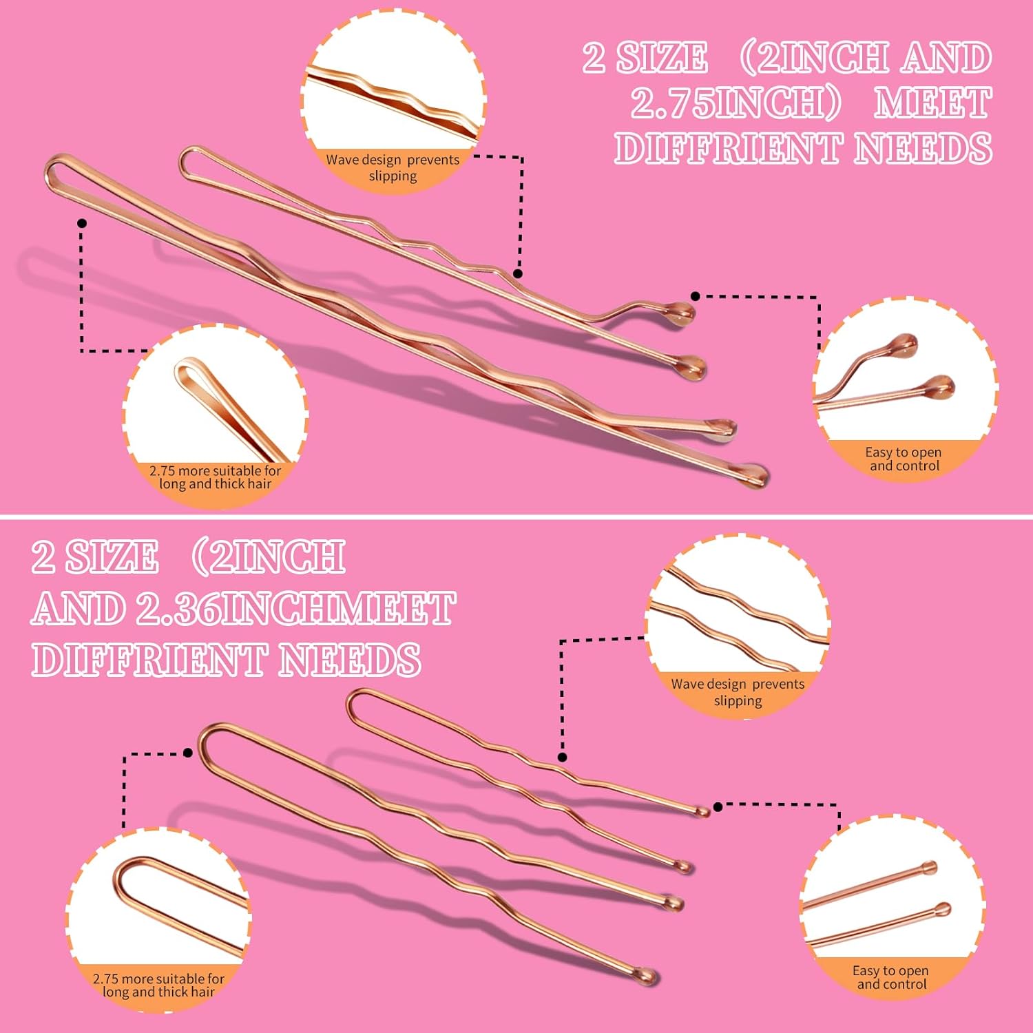 - Easy Use, Storage Rose Gold Bobby Pins: Teenitor gold hair pin kit, you can choose the right size bobby pins hair pins for women and thin or thick hair. Bobby pins rose gold, hair pin, hair bands are well placed in classified boxes for easy portability and use. 5 styles of bobby pins hair pins are separated so they don't get mixed up