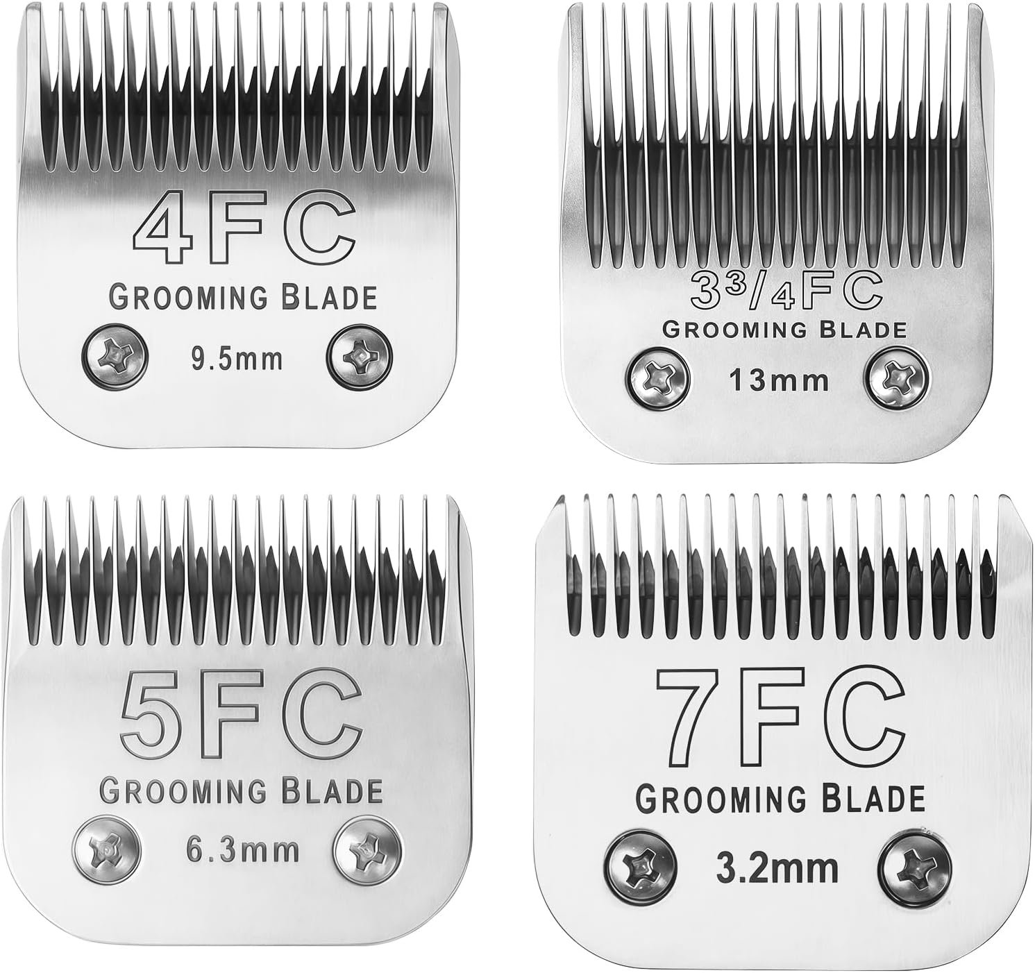 4FC+5FC+7FC+3-3/4FC Detachable Dog Grooming Blades, Compatible with Andis, Oster A5, Wahl KM10 Series Clippers, Silver (4 Packs)