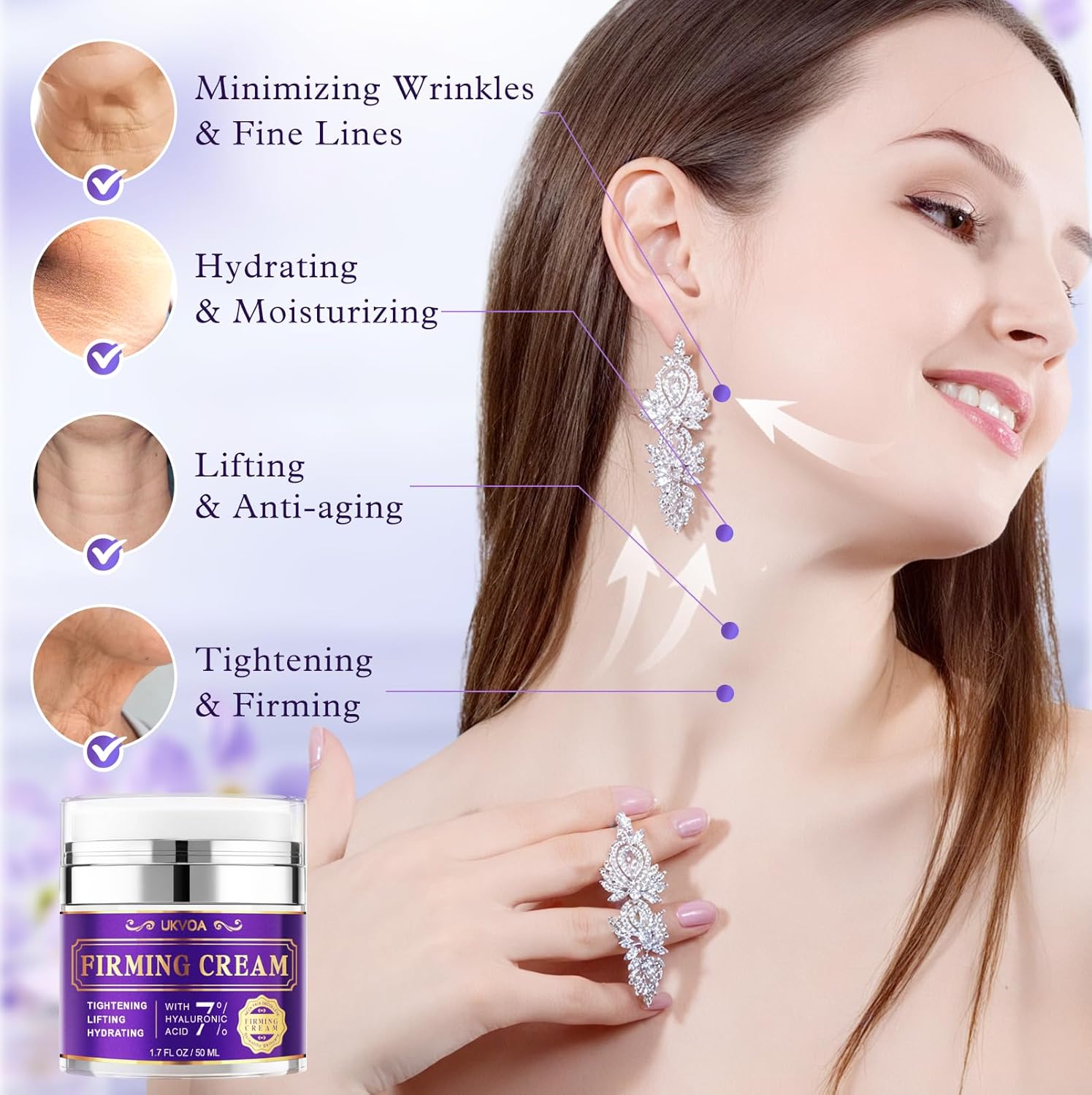 - Anti-Aging & Skin-Firming Formula: Expertly formulated with skin-plumping ingredients like retinol, collagen, and hyaluronic acid, UKVOA Firming Cream is designed to tighten and firm sagging skin on the neck, and face, and Decollete for a more youthful silhouette, making it ideal for those targeting visible signs of aging.