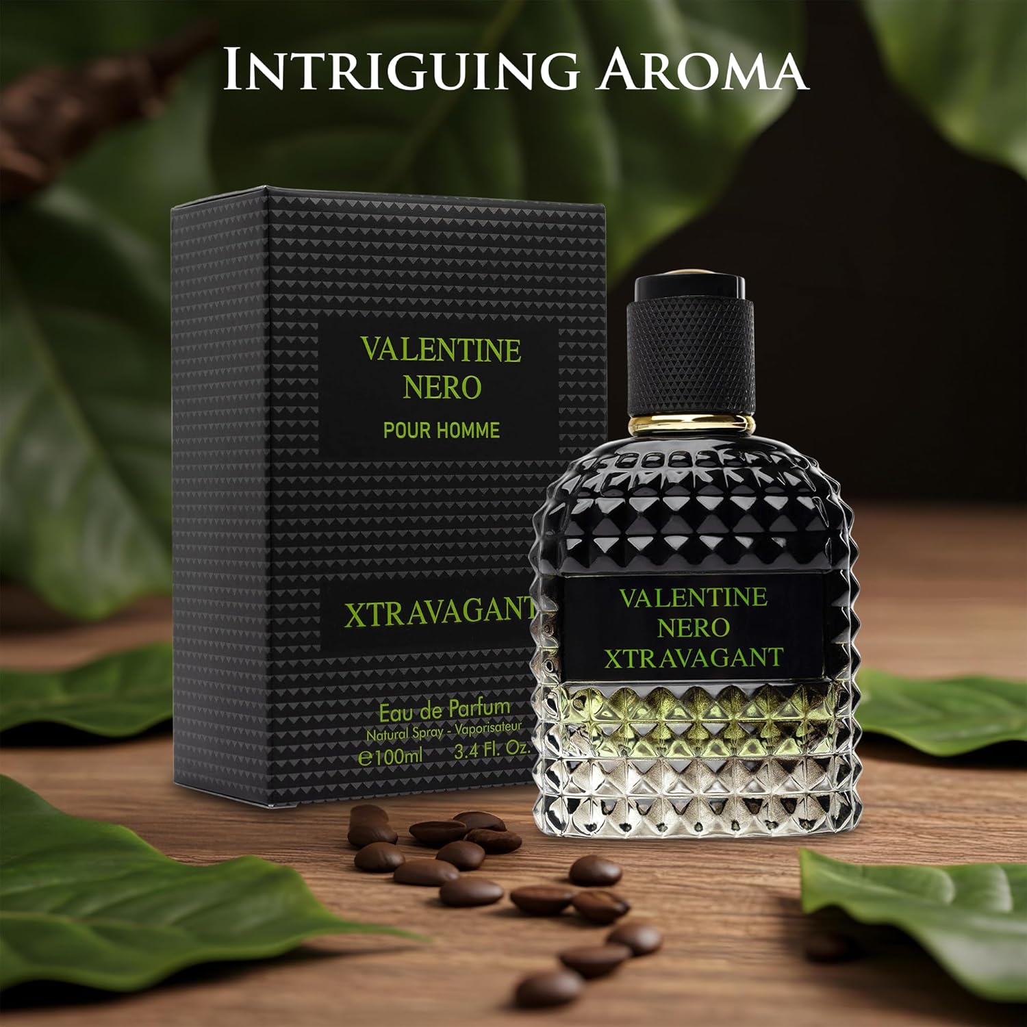 Valentine Nero Xtravagant for Men - Oriental Fougere Fragrance - Top Notes of Calabrian Bergamot & Espresso Coffee Accord - Base Scents of Refined Vetiver - Elegant 100ml Bottle, Parfume for Men