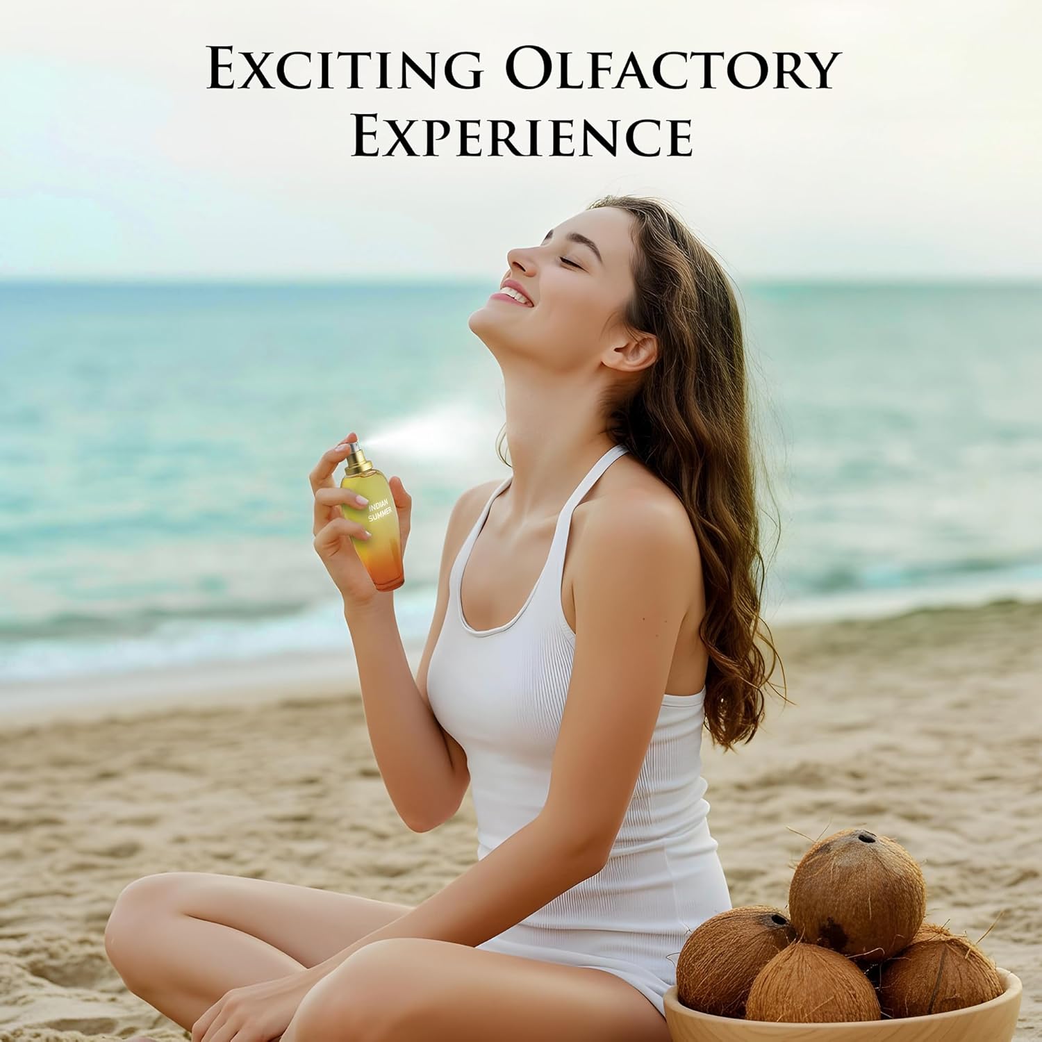 Indian Summer for Women 3.4 Fl Oz- Opening Scents of Mango, Nectarine & Orange - Sweet, Milky & Tropical Aromas of Coconut Blend - Base Notes of Sandalwood & Musk - Natural & Paraben Free, Parfume