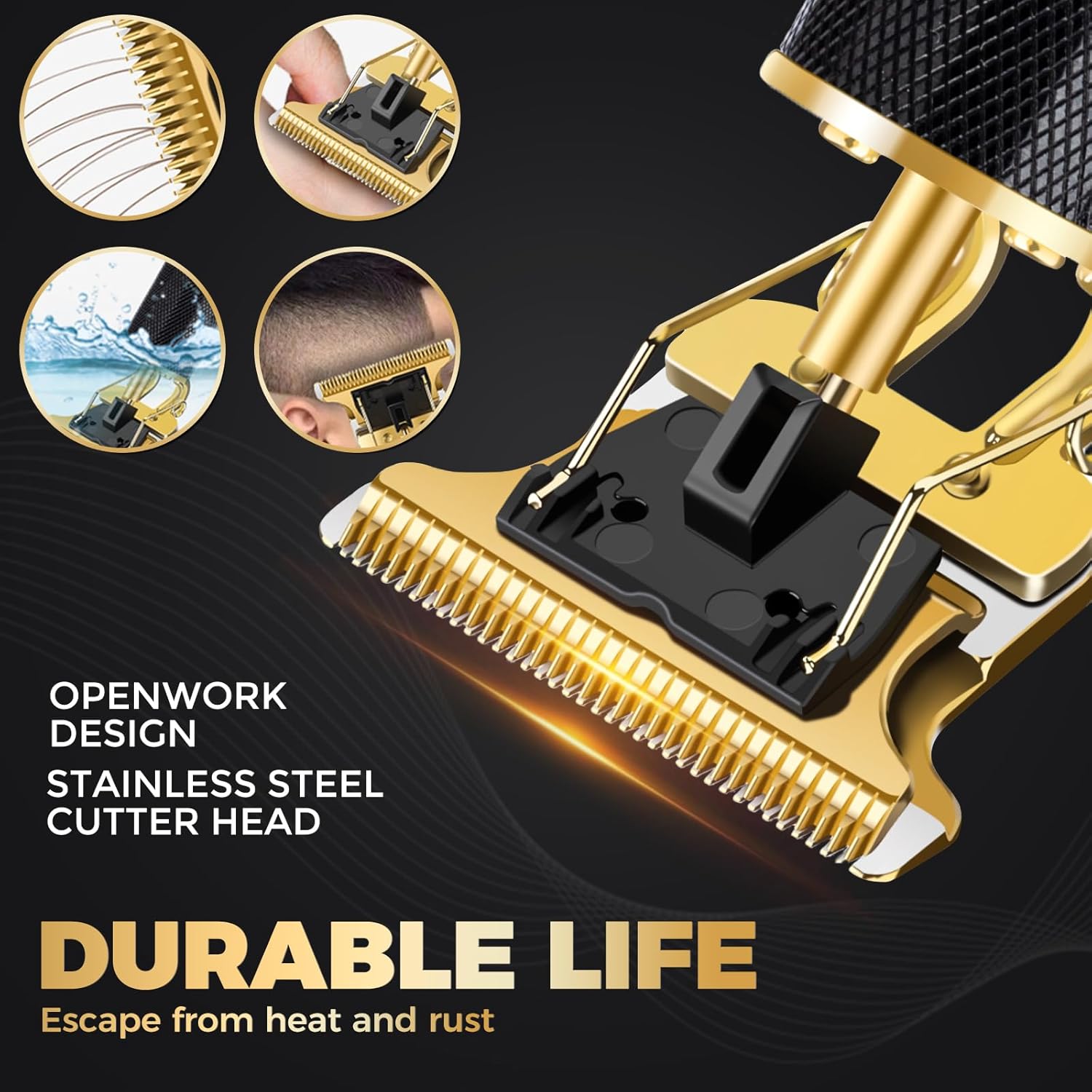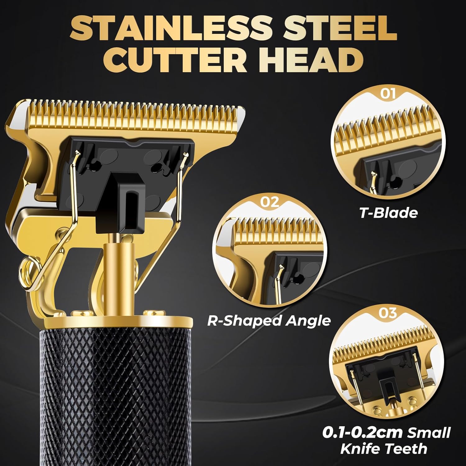 - T-Style Zero-Gap Cutter Head:Engineered with a sleek T-shaped stainless steel blade crafted for flawless precision, this clipper merges aesthetic elegance with uncompromising functionality. The ultra-sharp edges effortlessly navigate through hair, delivering a clean cut without tugging or discomfort. A built-in protective cover guards the blade against daily wear, enabling quick rinses under water for easy maintenance—no complicated cleanup required.