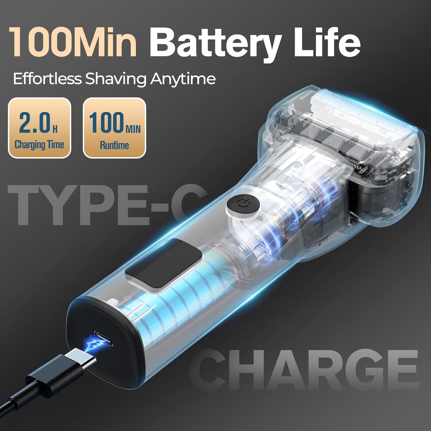 - Power That Lasts: Mens electric razors for shaving face deliver 100 minutes of cordless use after a quick 2-hour USB-C charge. Stay groomed anywhere, anytime with this portable electric shavers for men