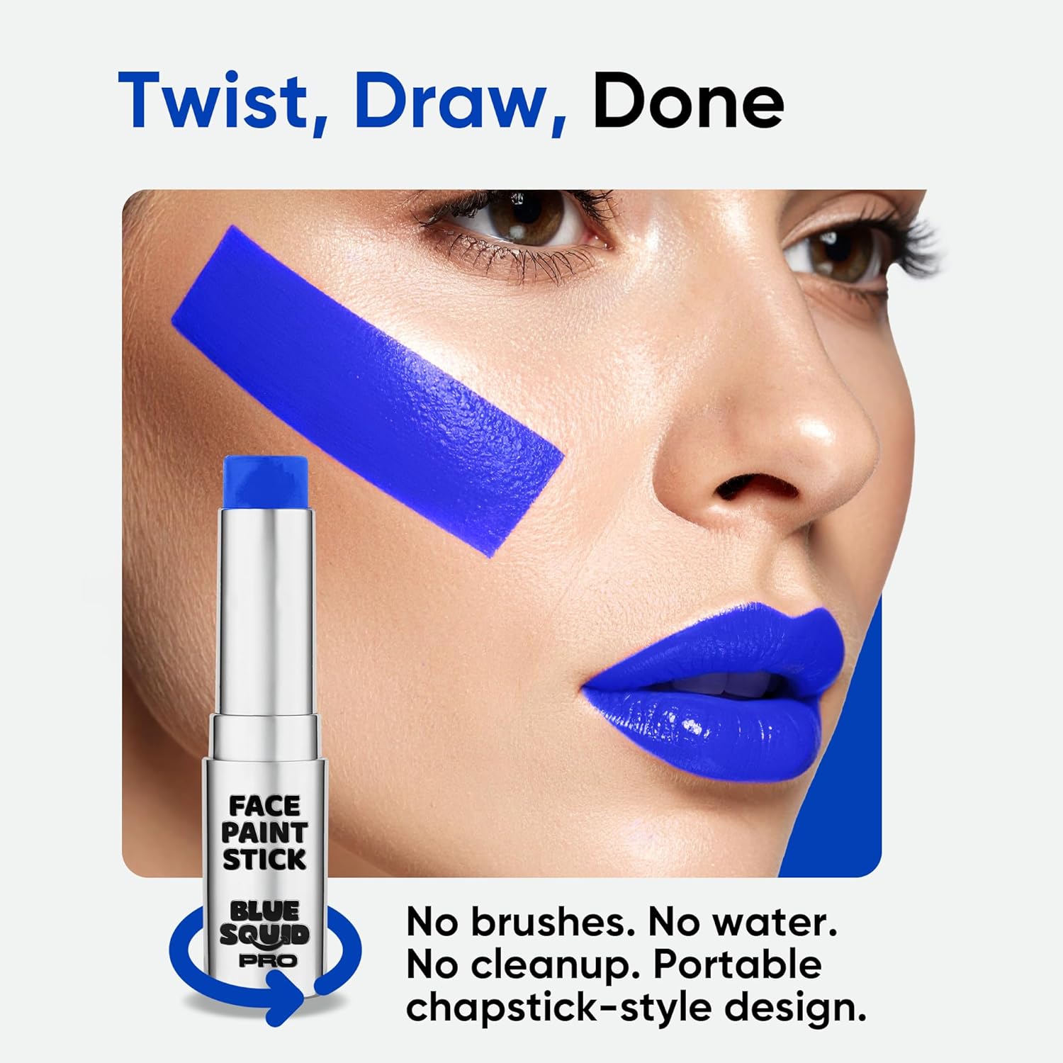 Blue Squid PRO Blue Face Paint Stick - Waterproof Blue Body Paint for Skin Adults & Kids Eye Black Baseball, Eyeblack Softball - Hypoallergenic Twist-Up Non-Toxic Makeup Stick for Cosplay, Sports, SFX