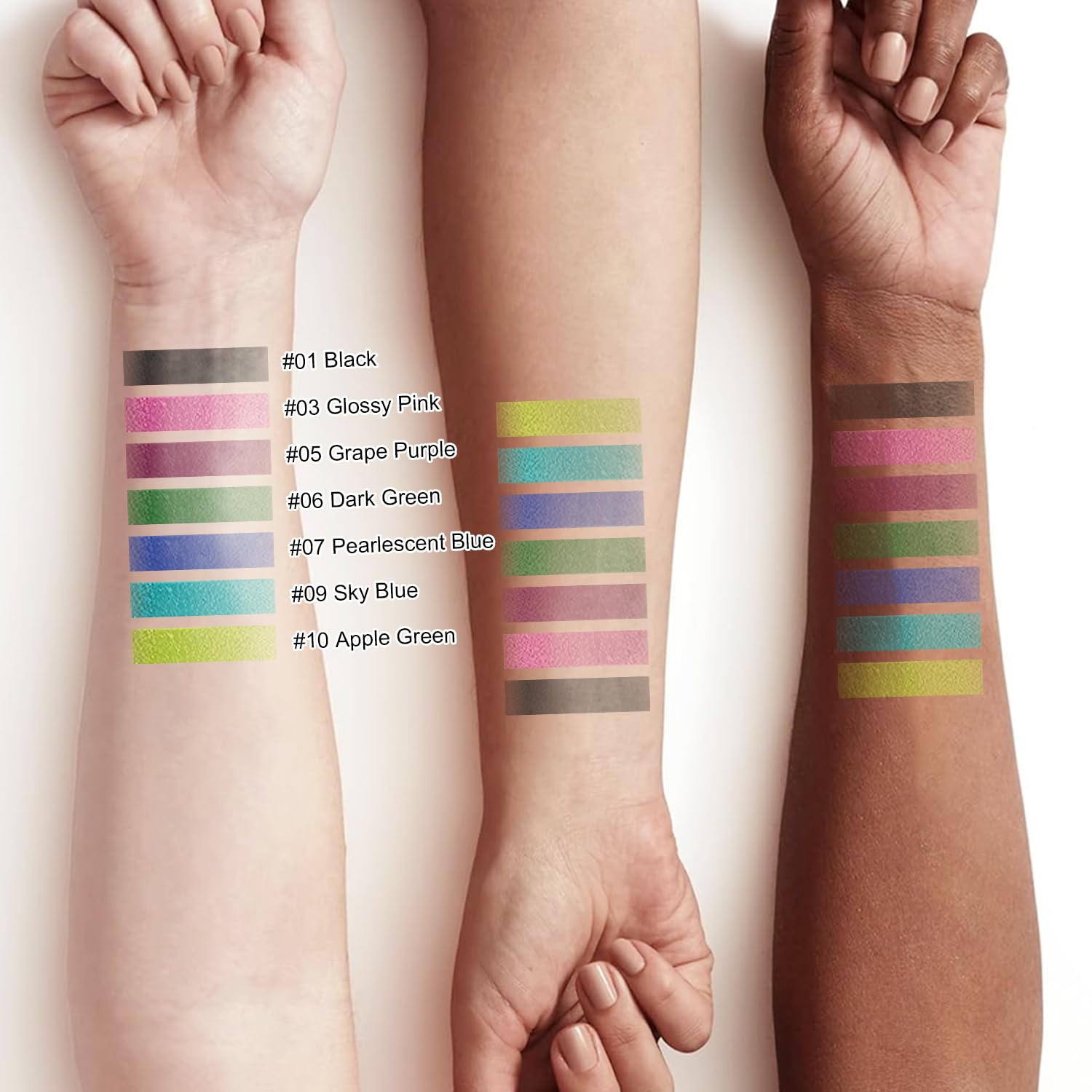 - 【Usage& Occasions】7 different Colorful Eye Liner, ideal for Party, Cosmetic Show, Live Show, Prom Night, Dance Party, and Wedding Makeup. With unique package, would be the perfect gift to your friends, bestie, families.