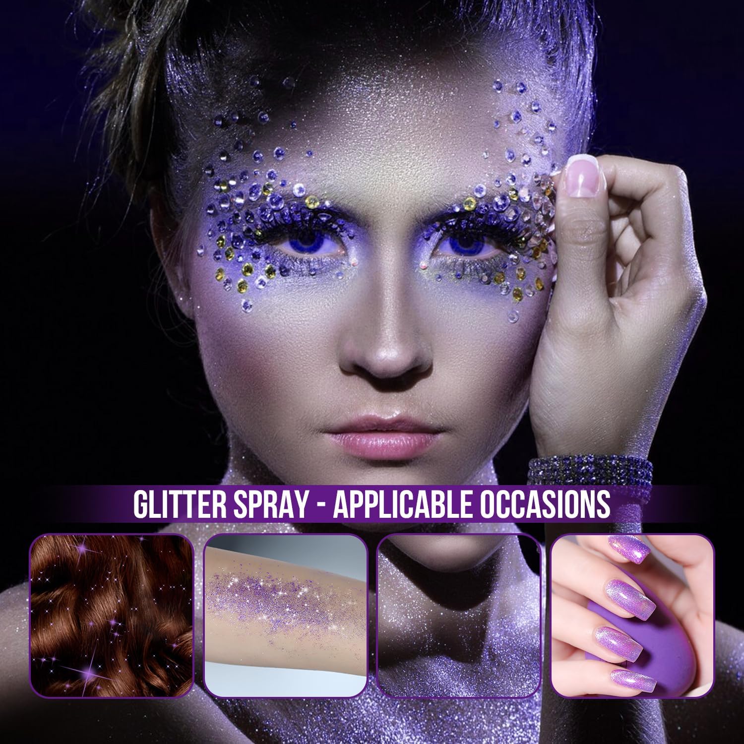 - 【Safe and Gentle for Skin】Our glitter Spray is vegan and not tested on animals. Glitter spray for hair and body is milder, has no harsh smell and will not irritate your hair, body or skin. The body shiny spray is waterproof and sweatproof, not easy to fall off, and can hold makeup for 24 hours. You can use body glitter with confidence. It adds glamor and glitz to any look!