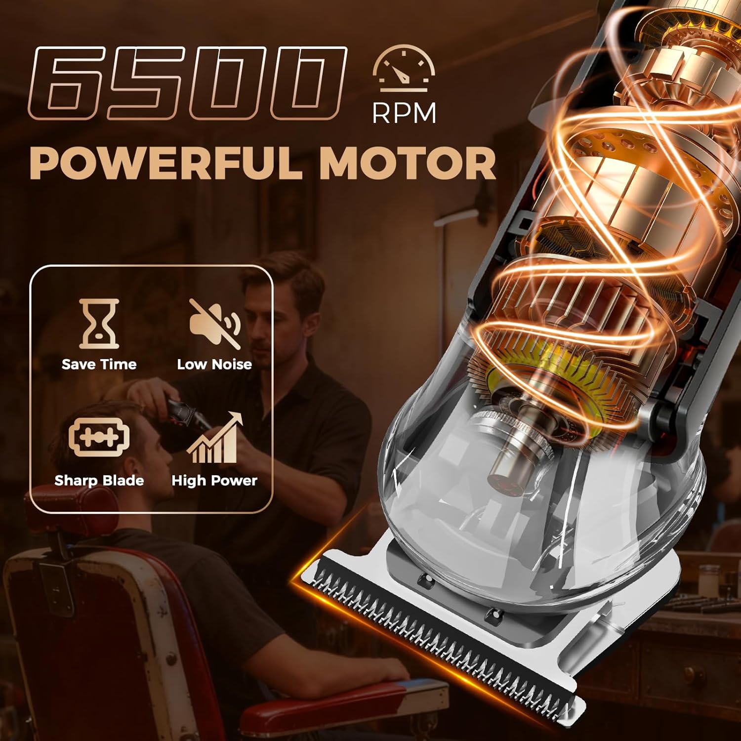 - High-Performance Motors: Equipped with a powerful 7500RPM motor for the men's electric razor and a robust 6500RPM motor for the barber clippers. Engineered to minimize friction, reduce tugging, and deliver salon-quality results across all hair types.