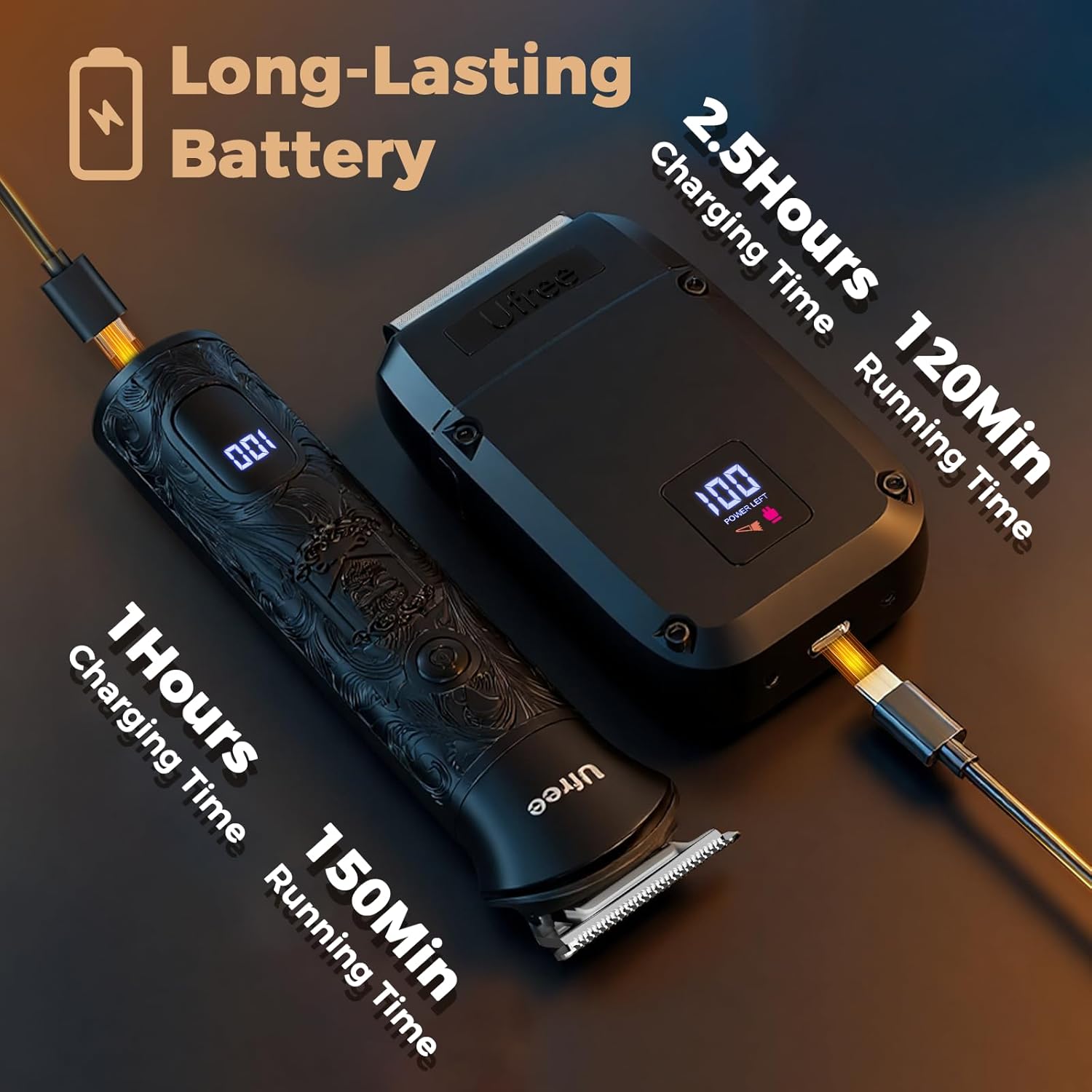 - Fast Charging & Rechargeable: The hair trimmers can run for 150 minutes after being charged for 1.5 hours, and the men's electric shaver for shaving face can run for 120 minutes after being charged for 2.5 hours. The Clear LED Display indicates the battery level and provides a notification to prompt timely charging.