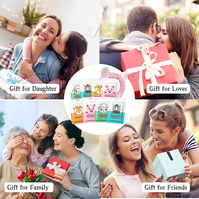 - 【Perfect Gift for Teen Girl】Looking for a thoughtful birthday gift for teenage girl ? This 8 pack hydrating face masks set for girls with a pink bunny headband is an ideal gift for women, teens, kids, or girls.Whether it's for a birthday, holiday, or special occasion, easter gifts for teens,these animals sheet masks skincare makes a fun and practical gift, especially for spa nights with friends